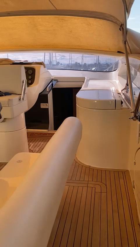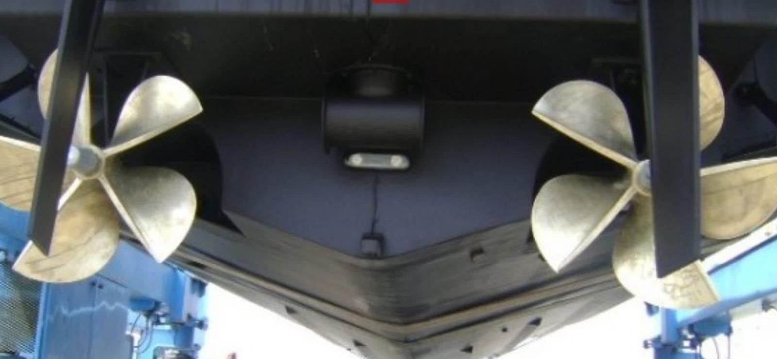 Douche de cockpit, Phare de poursuite, Flaps hydrauliques, Passerelle (idraulica), Pompe de cale manuelle, Cockpit en teck (e piattaforma), Prise de quai, Connexion eau sous pression à quai, table de cockpit.