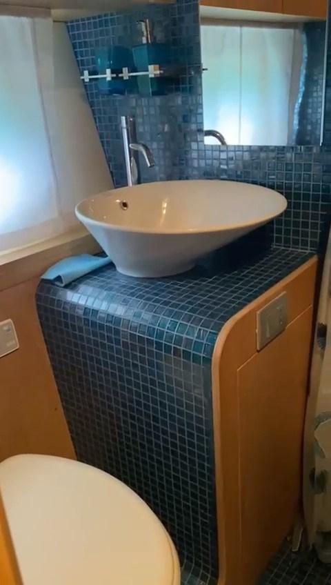 Ballon d'eau chaude, Cuve à eaux noires, Plancher intérieur en bois (cabine), 2 Toilettes électriques.
