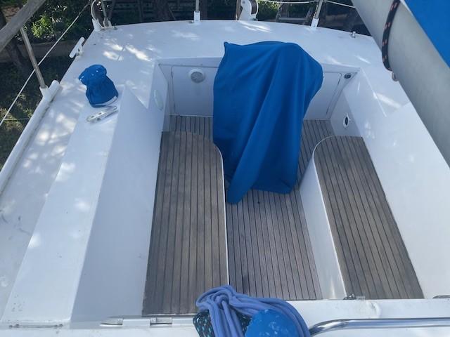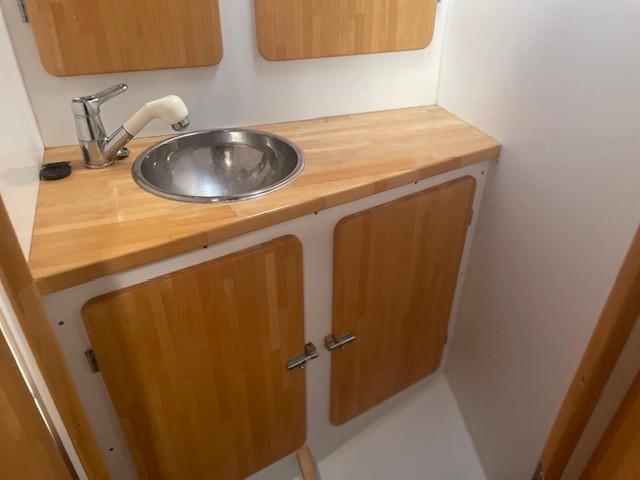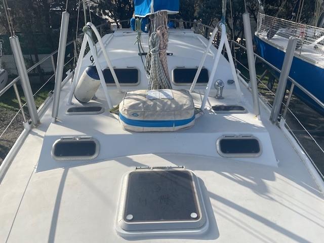 Hauteur sous barrot cabine avant 1.90m- La couchette avant fait 1.97 x 1.56m, aération excellente avec 2 panneaux de Pont,2 hublots de coque pour la Luminosité+ Nombreux rangements et un confort haut de gamme