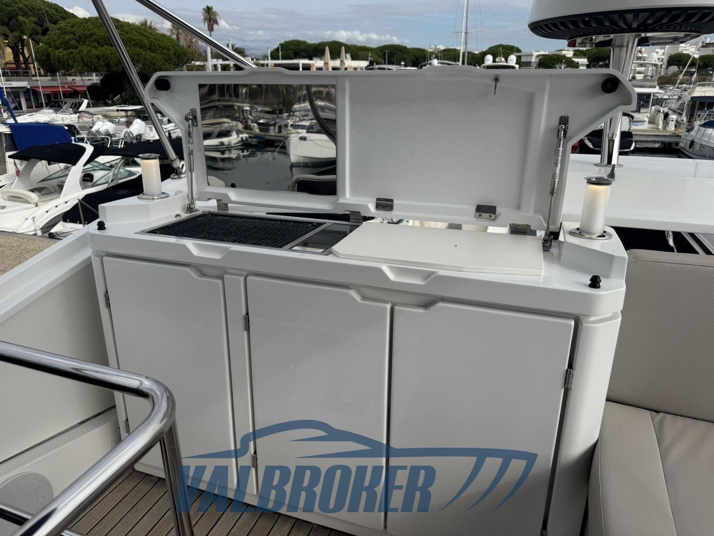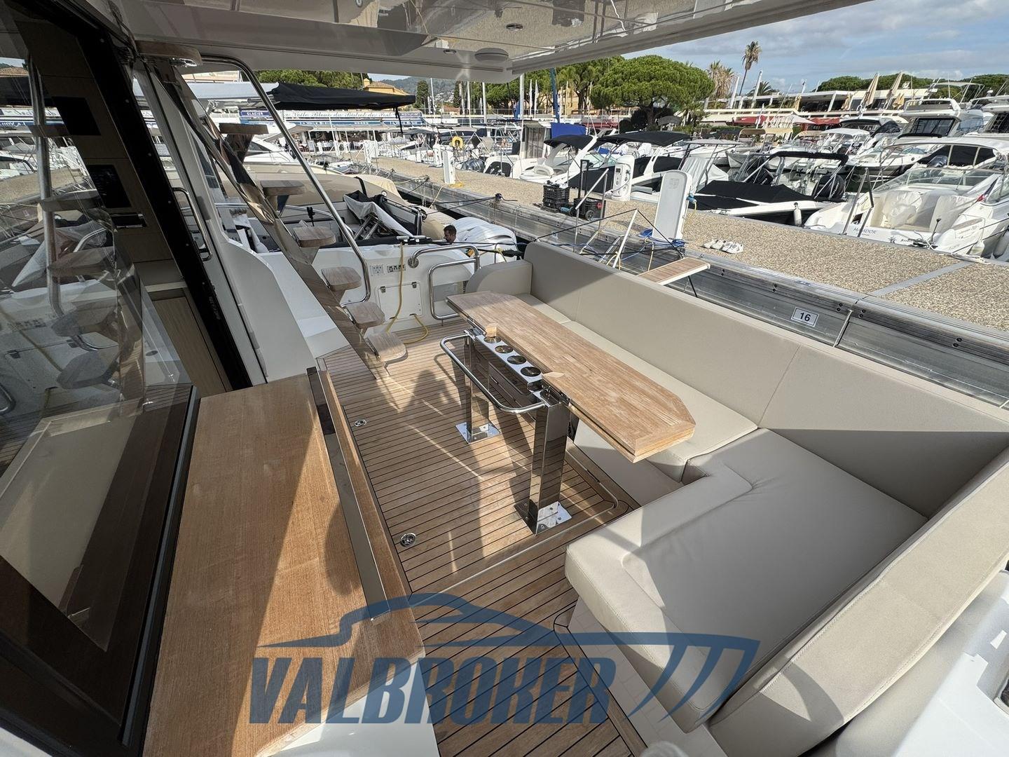 Auto Dynamic Trim Interceptor, Eau sous pression, Douche de cockpit, Double barre à roue, Passerelle, Plateforme arrière (teak), Cockpit en teck, Guindeau électrique, table de cockpit (teak), Table pliante de salon.