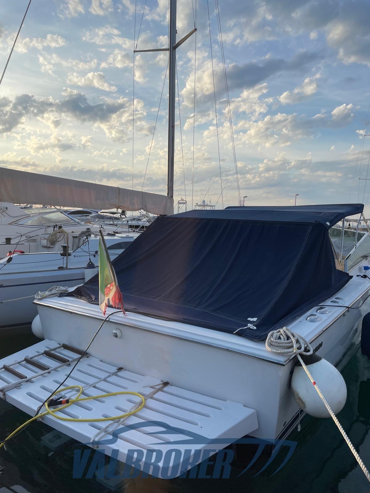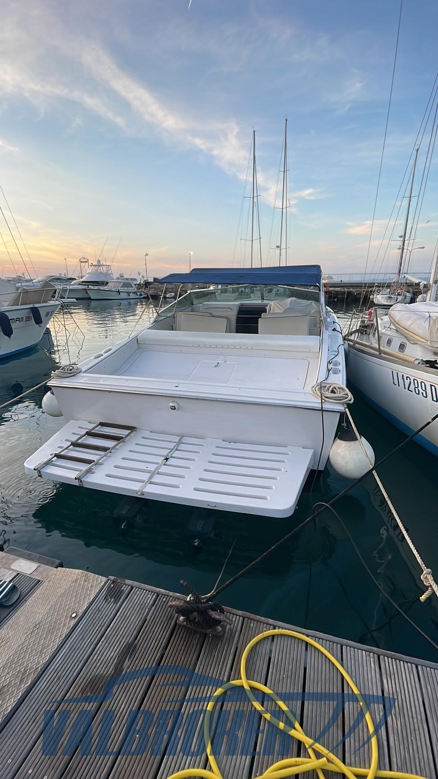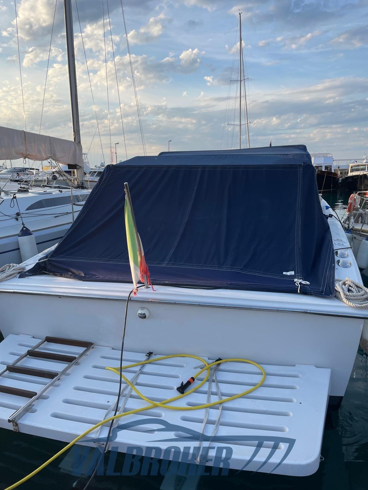 Bateau à moteur offshore du chantier naval italien remotorisé 2 puissants Volvo Penta D6 350 common rail rénovés en 2024. De grands espaces à la proue et à la poupe ainsi qu’un auvent pour créer de l’ombre. Les sports sont ouverts pour des transferts rapides. Vitesse 40 nœuds !!