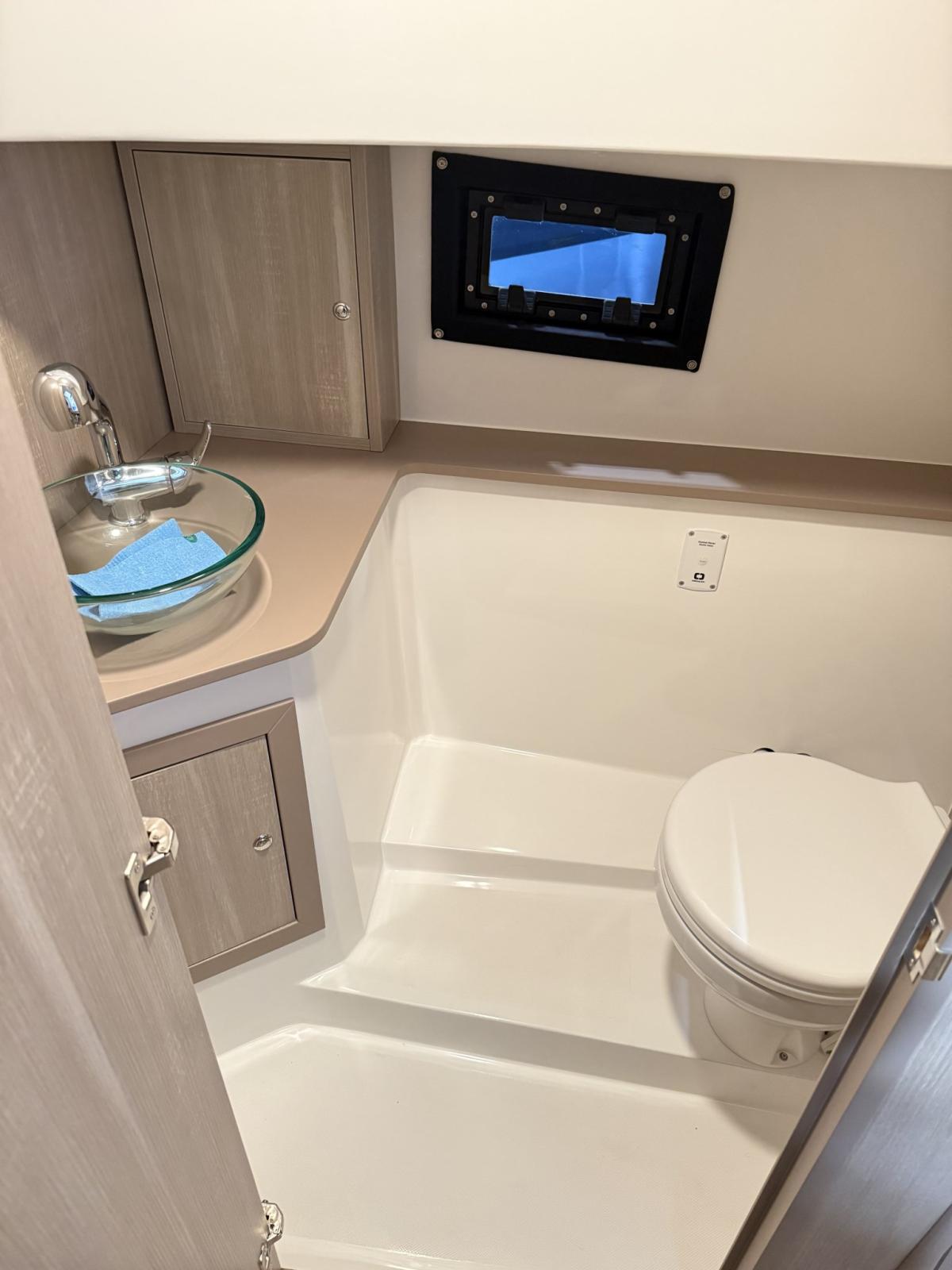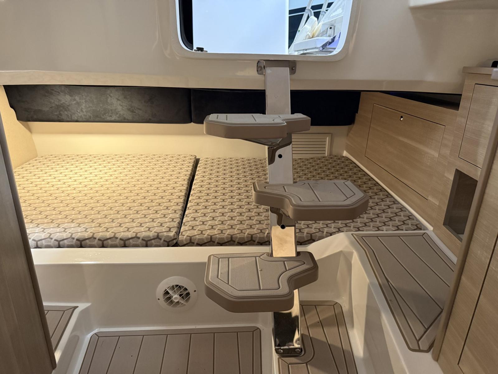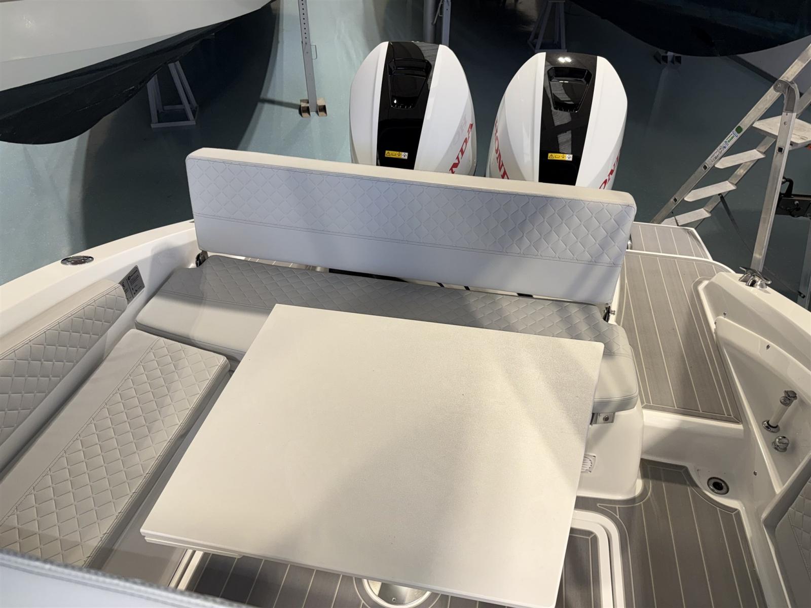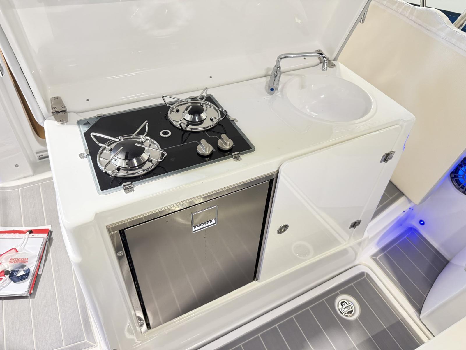Alarme moteur, Eau sous pression, Câble d’alimentation à quai, Douche de cockpit, Lavabo dans le cockpit, Éclairage de courtoisie, Spots sous-marins, Prise de quai, Rollbar, Guindeau électrique, Echelle de bain, table de cockpit, Corne.
