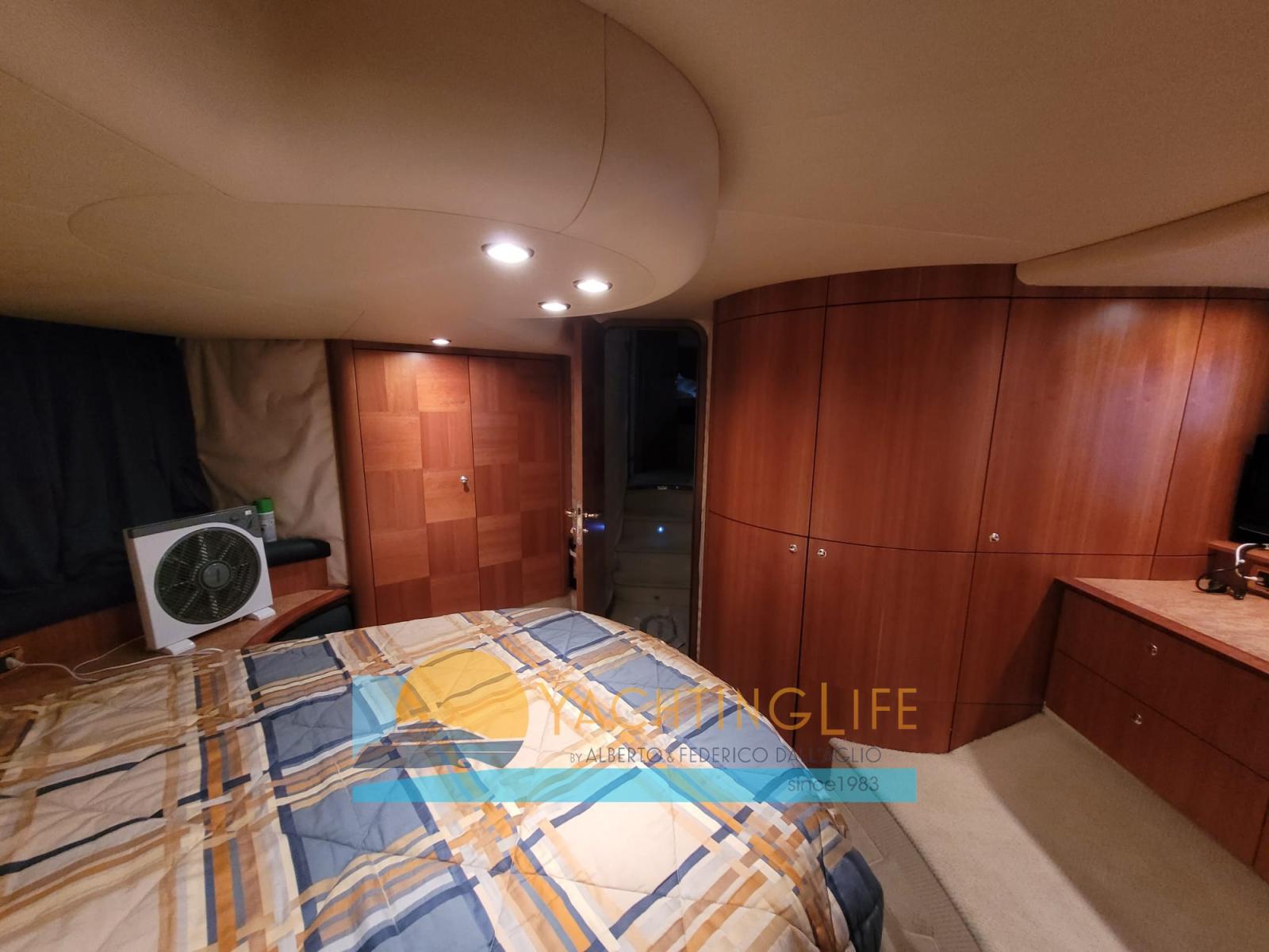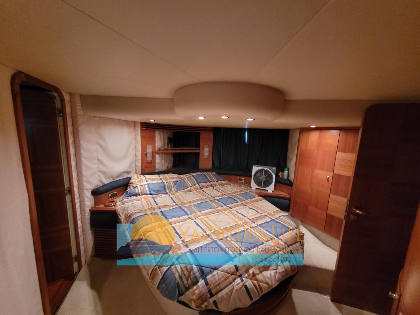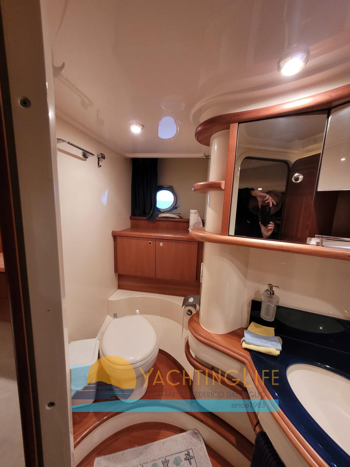 Alarme moteur, Alarme de pompe de cale, Eau sous pression, Radeau de sauvetage (da revisionare), Douche de cockpit, Double barre à roue, Flaps hydrauliques, Grue de flybridge, Extincteur(s) fixe(s), Indicateurs de flaps, Éclairage de courtoisie, Passerelle (idraulica portata 250kg), Plateforme arrière, Pompe de cale automatique, Cockpit en teck, Prise de quai, Guindeau électrique, Echelle de bain, Selles pour Annexe, table de cockpit, Annexe (Novurania 320 e motore 20hp), Corne, 2 Winch électrique arrière.