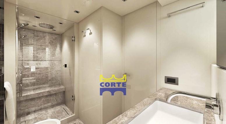 La suite du propriétaire située au centre du navire, avec dressing et salle de bain avec douche.