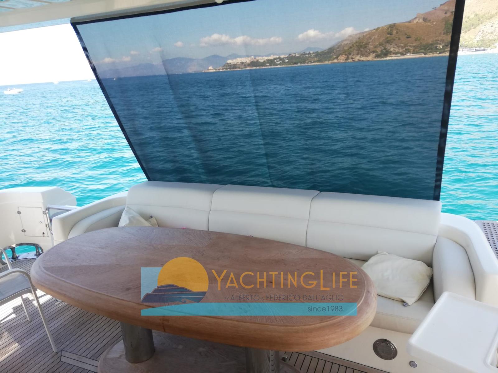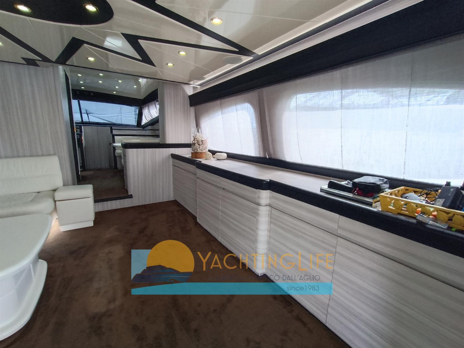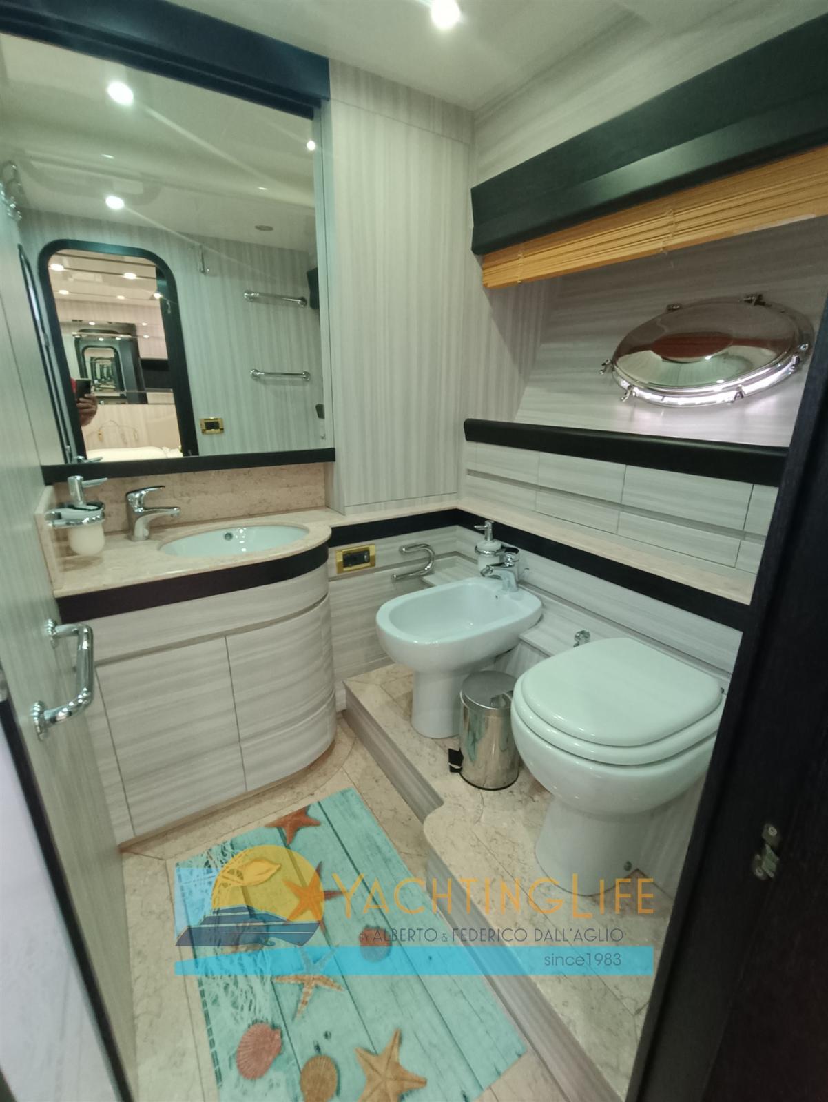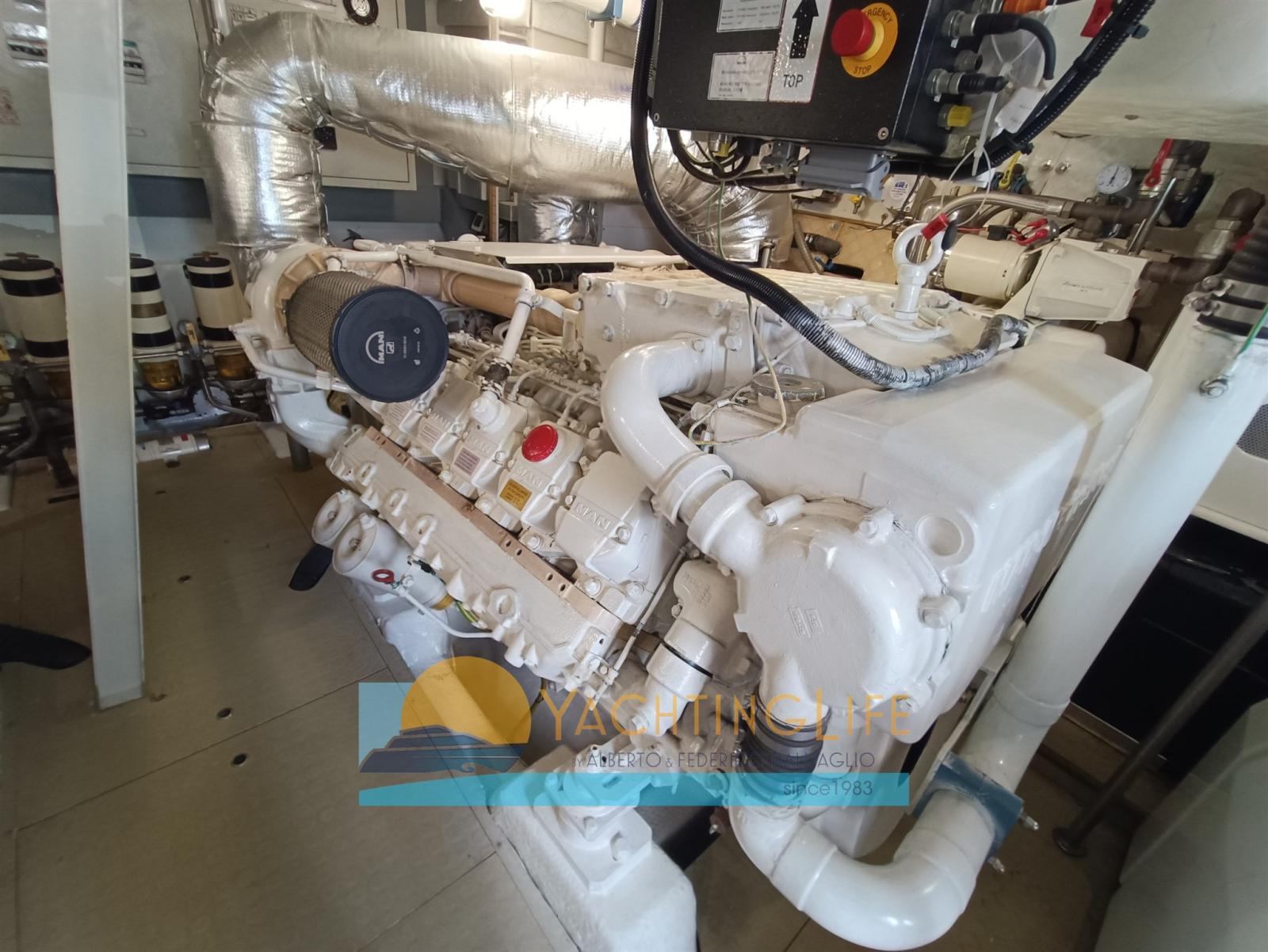 Alarme moteur, Alarme de pompe de cale, Eau sous pression, Passavant en teck, 2 Chargeur de batterie, Douche de cockpit, Double barre à roue, Flaps hydrauliques (N°2), Grue de flybridge, Extincteur(s) fixe(s), Compresseur de plongée, Indicateurs de flaps, Lavage de chaine, Éclairage de courtoisie, Spots sous-marins, Passerelle (idraulica), Plateforme arrière, Pompe de cale automatique, Porte latérale, Porte latérale, Cockpit en teck, Prise de quai, Guindeau électrique, Echelle de bain, table de cockpit, Corne, 2 Winch électrique arrière.