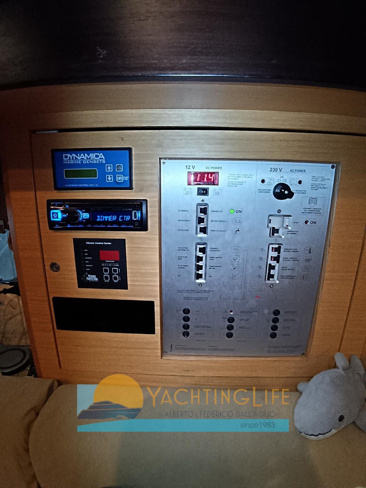 Alarme moteur, Eau sous pression, Indicateurs de flaps, Moteur hors-bord pour annexe (4hp Suzuki), Passerelle, Plateforme arrière, Pompe de cale automatique, Prise de quai, Connexion eau sous pression à quai, Rollbar, Guindeau électrique, Echelle de bain, table de cockpit, Annexe (2025), Corne.