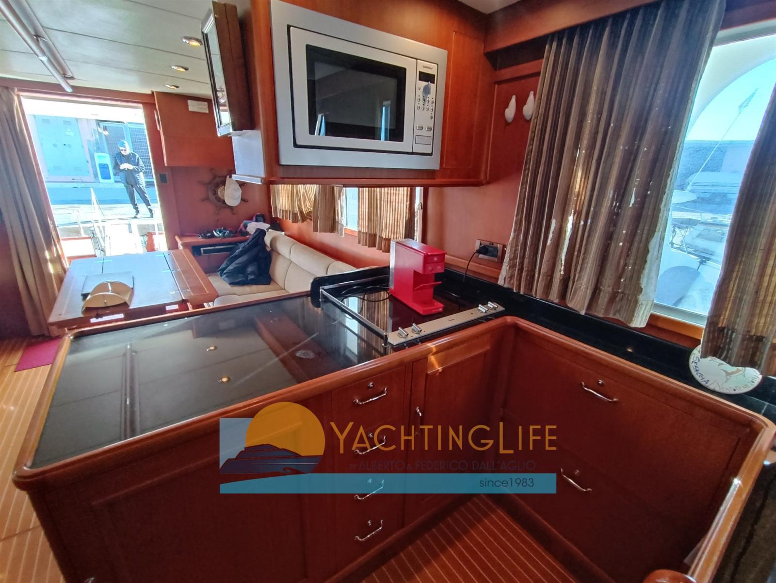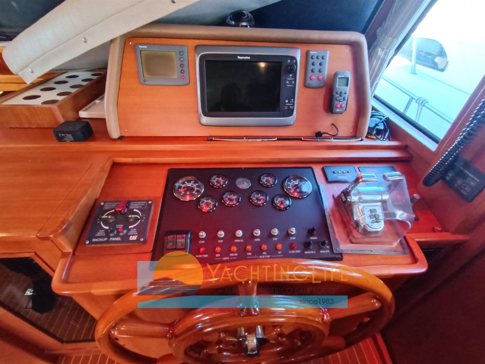 Alarme moteur, Alarme de pompe de cale, Eau sous pression, Douche de cockpit, Double barre à roue, Phare de poursuite, Flaps hydrauliques, Grue de flybridge, Indicateurs de flaps, Éclairage de courtoisie, Passerelle, Pompe de cale automatique, Cockpit en teck, Prise de quai, Guindeau électrique, Echelle de bain, table de cockpit, Corne, Winch électrique arrière.