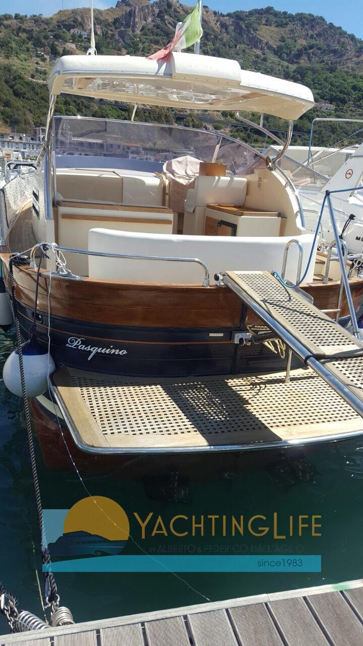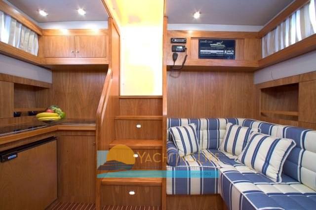 Alarme moteur, Alarme de pompe de cale, Eau sous pression, Passavant en teck, Douche de cockpit, Flaps électriques, Éclairage de courtoisie, Passerelle (idraulica), Plateforme arrière (in teak), Pompe de cale automatique, Cockpit en teck, Prise de quai, Guindeau électrique, Echelle de bain, Corne.