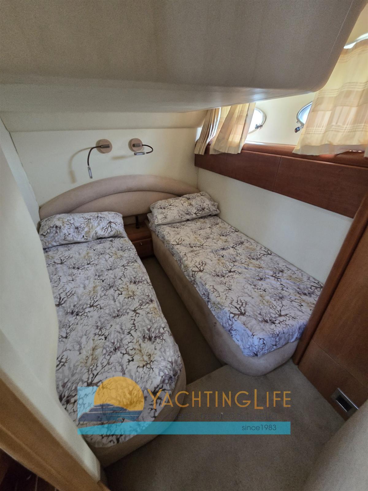 Alarme moteur, Alarme de pompe de cale, Alternateur, Eau sous pression, Douche de cockpit, Flaps hydrauliques, Garage à annexe, Extincteur(s) fixe(s), Indicateurs de flaps, Éclairage de courtoisie, Passerelle (idraulica), Pompe de cale automatique, Porte latérale, Prise de quai, Rollbar, Guindeau électrique, table de cockpit, Annexe, Corne, Winch électrique arrière.