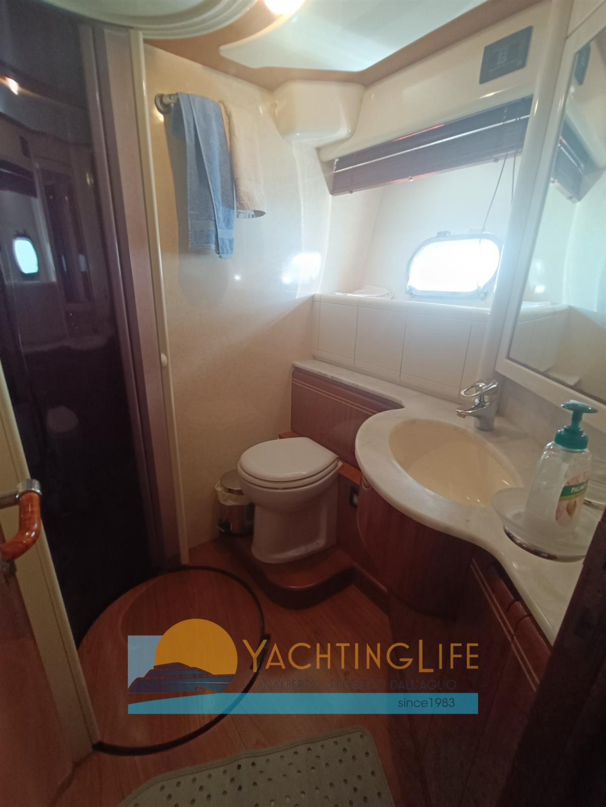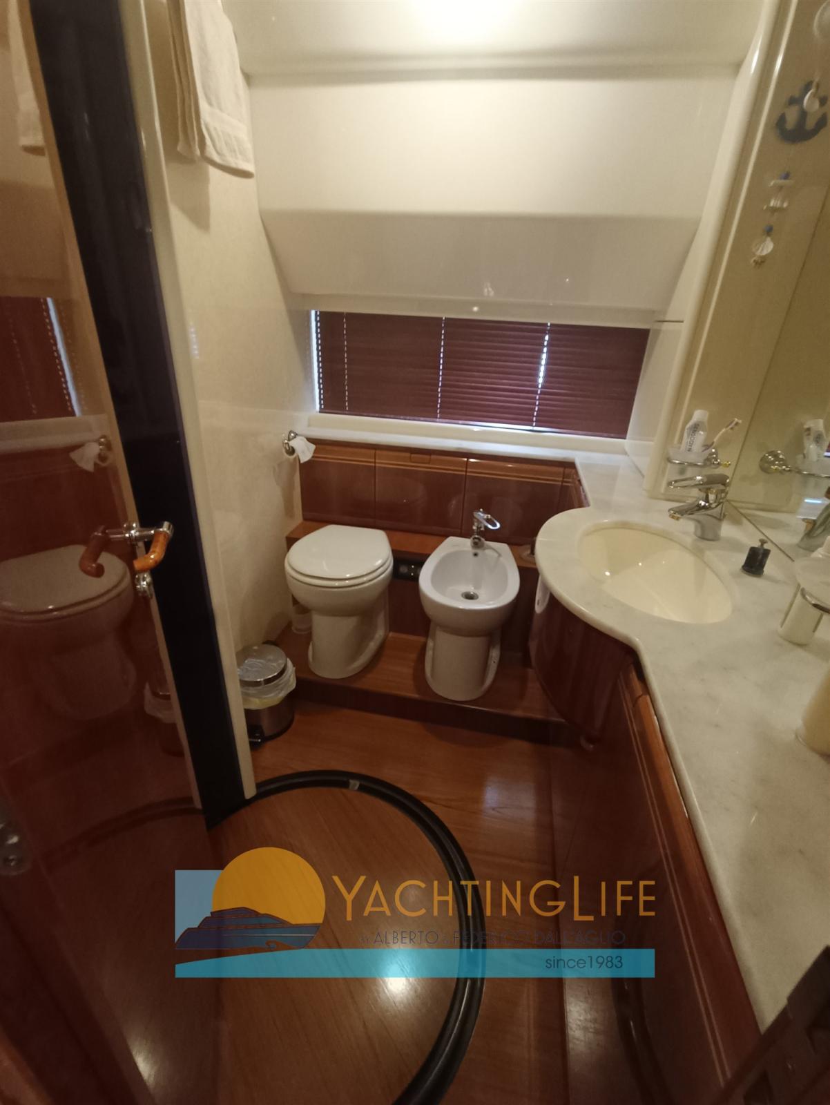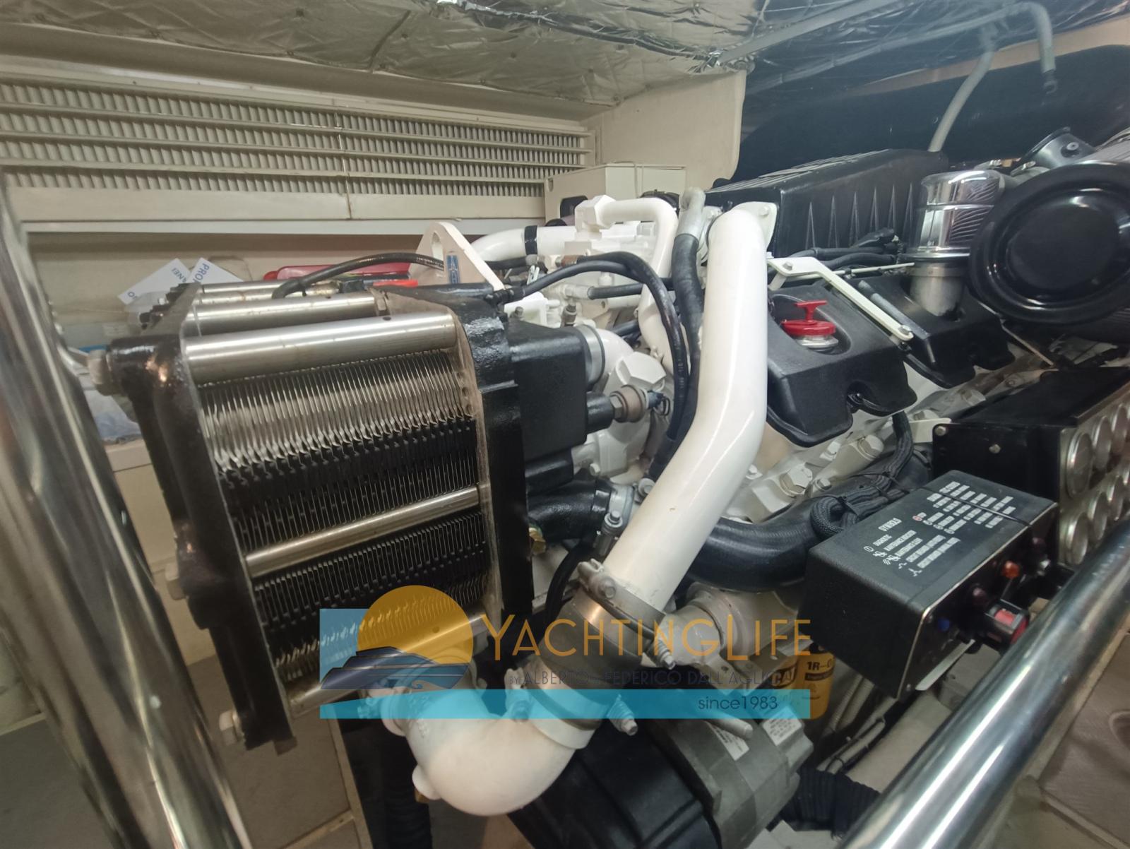 Alarme moteur, Alarme de pompe de cale, 2 Ancre, Eau sous pression, 2 Radeau de sauvetage, Passavant en teck, Douche de cockpit, Double barre à roue, Phare de poursuite, Flaps hydrauliques, Grue de flybridge, Extincteur(s) fixe(s), Indicateurs de flaps, Lavage de chaine, Lavabo dans le cockpit, Éclairage de courtoisie, Spots sous-marins (colorate), Passerelle (idraulica), Plateforme arrière, Pompe de cale automatique, Porte latérale, Porte latérale, Cockpit en teck, Prise de quai, Guindeau électrique, Echelle de bain, table de cockpit, Annexe (e motore), Corne, 2 Winch électrique arrière.
