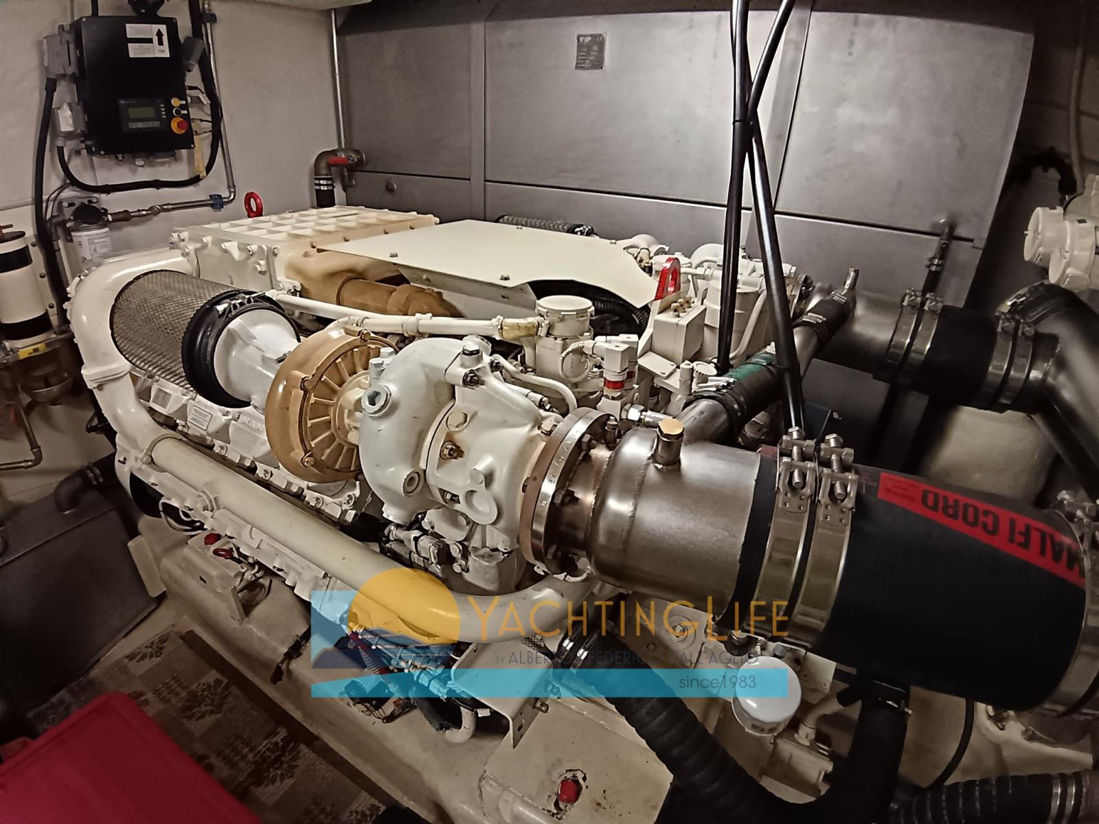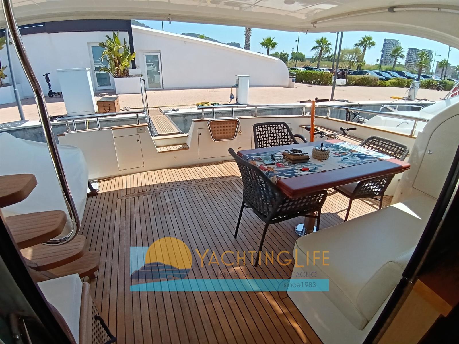 Alarme moteur, Alarme de pompe de cale, Eau sous pression, Passavant en teck, 2 Chargeur de batterie, Douche de cockpit, Double barre à roue, Flaps hydrauliques, Extincteur(s) fixe(s), Indicateurs de flaps, Éclairage de courtoisie, Passerelle (idraulica), Plateforme arrière, Pompe de cale automatique, Porte latérale, Porte latérale, Cockpit en teck, Prise de quai, Onduleur, Guindeau électrique, Echelle de bain, Selles pour Annexe, table de cockpit, Annexe (e motore), Corne, 2 Winch électrique arrière.