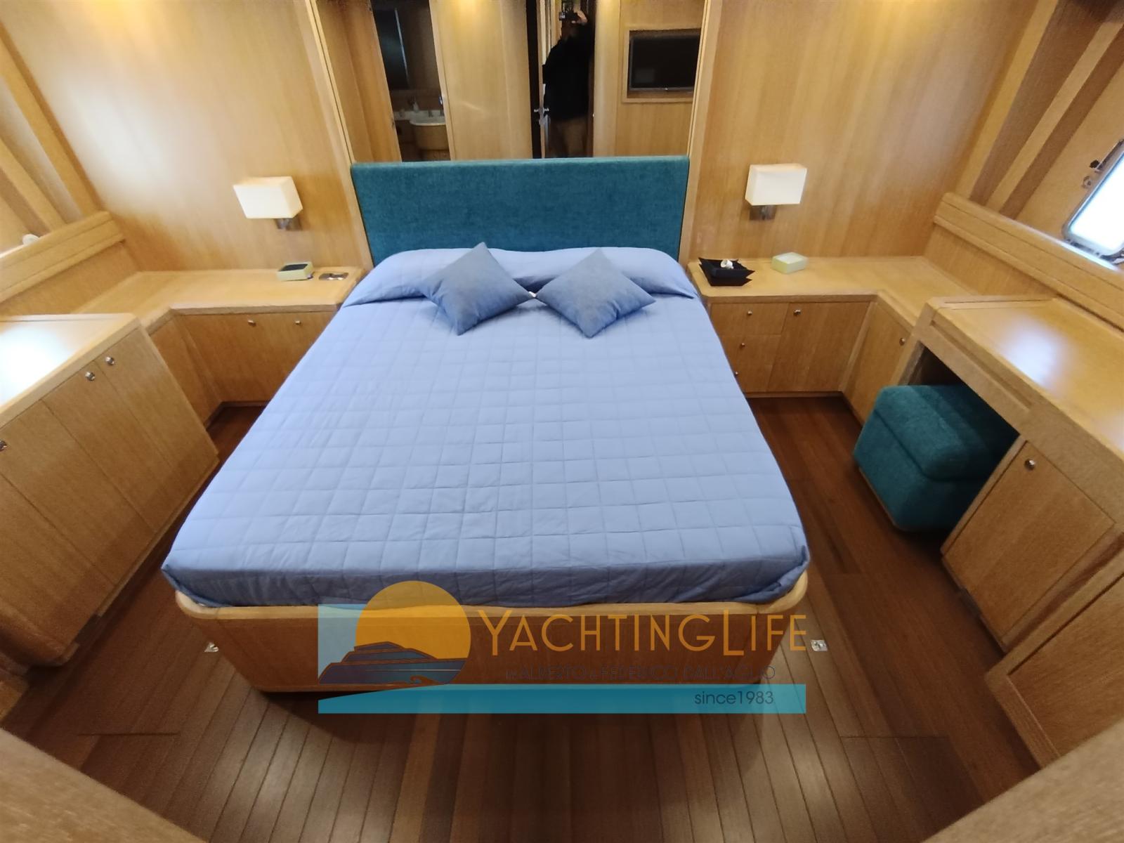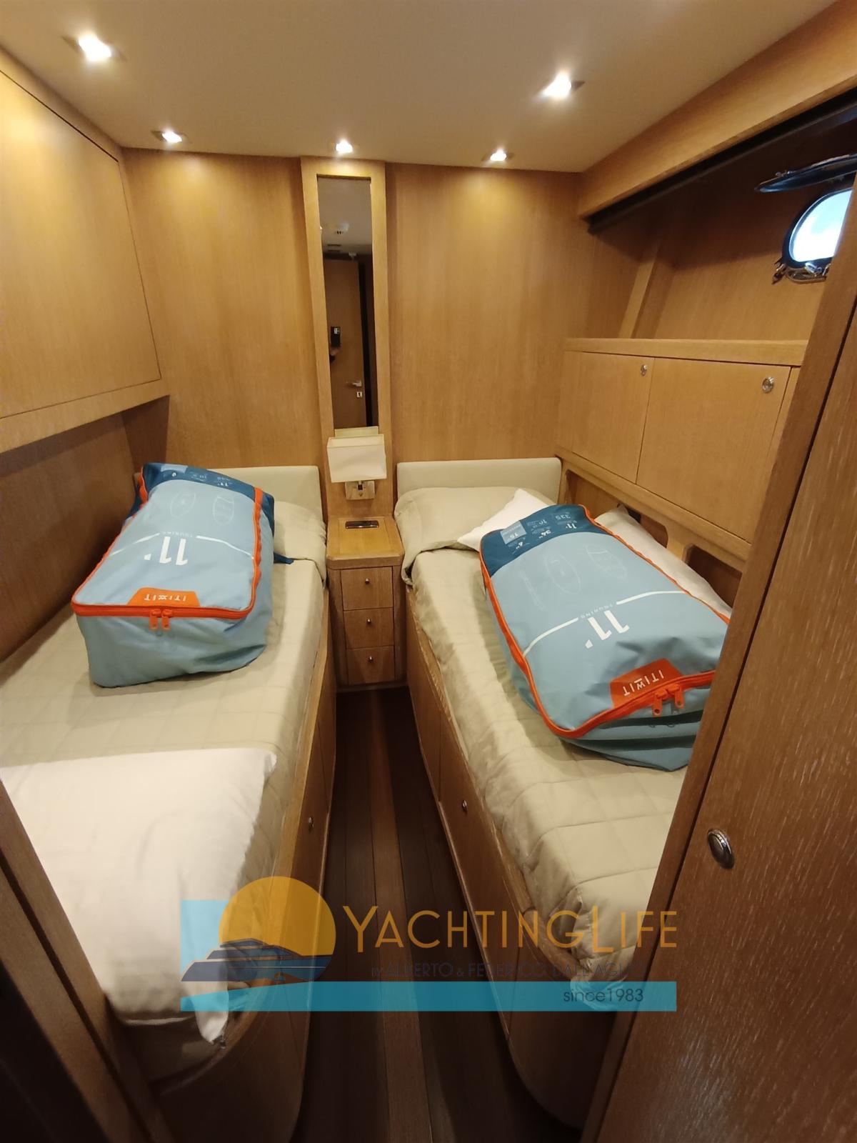 Alarme moteur, Alarme de pompe de cale, Eau sous pression, 4 Chargeur de batterie (Nuovi), Douche de cockpit, Phare de poursuite, Flaps hydrauliques, Garage à annexe, Hard top, Extincteur(s) fixe(s), Indicateurs de flaps, Lavage de chaine, Lavabo dans le cockpit, Éclairage de courtoisie, Passerelle (Idrulica a scomparsa), Plateforme arrière, Pompe de cale automatique, Porte latérale, Cockpit en teck, Prise de quai, Guindeau électrique, Echelle de bain (Elettrica), table de cockpit, Filières avec sortie latèrale, Corne, Winch électrique arrière.