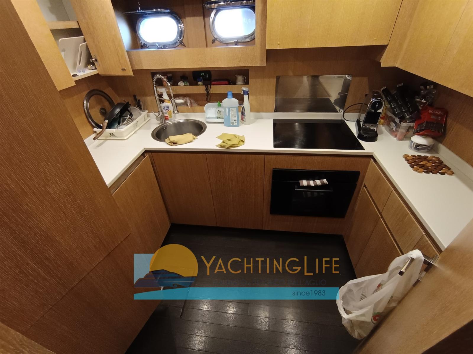 Ballon d'eau chaude, Coffre-fort, Air Conditionné, Dessalinisateur (Idromar 200 lt/h), Cuve à eaux noires, Plancher intérieur en bois (Wenge), Prises interieures 12v, Prises interieures 220v, Réservoir d'eau noire, Toilettes électriques.