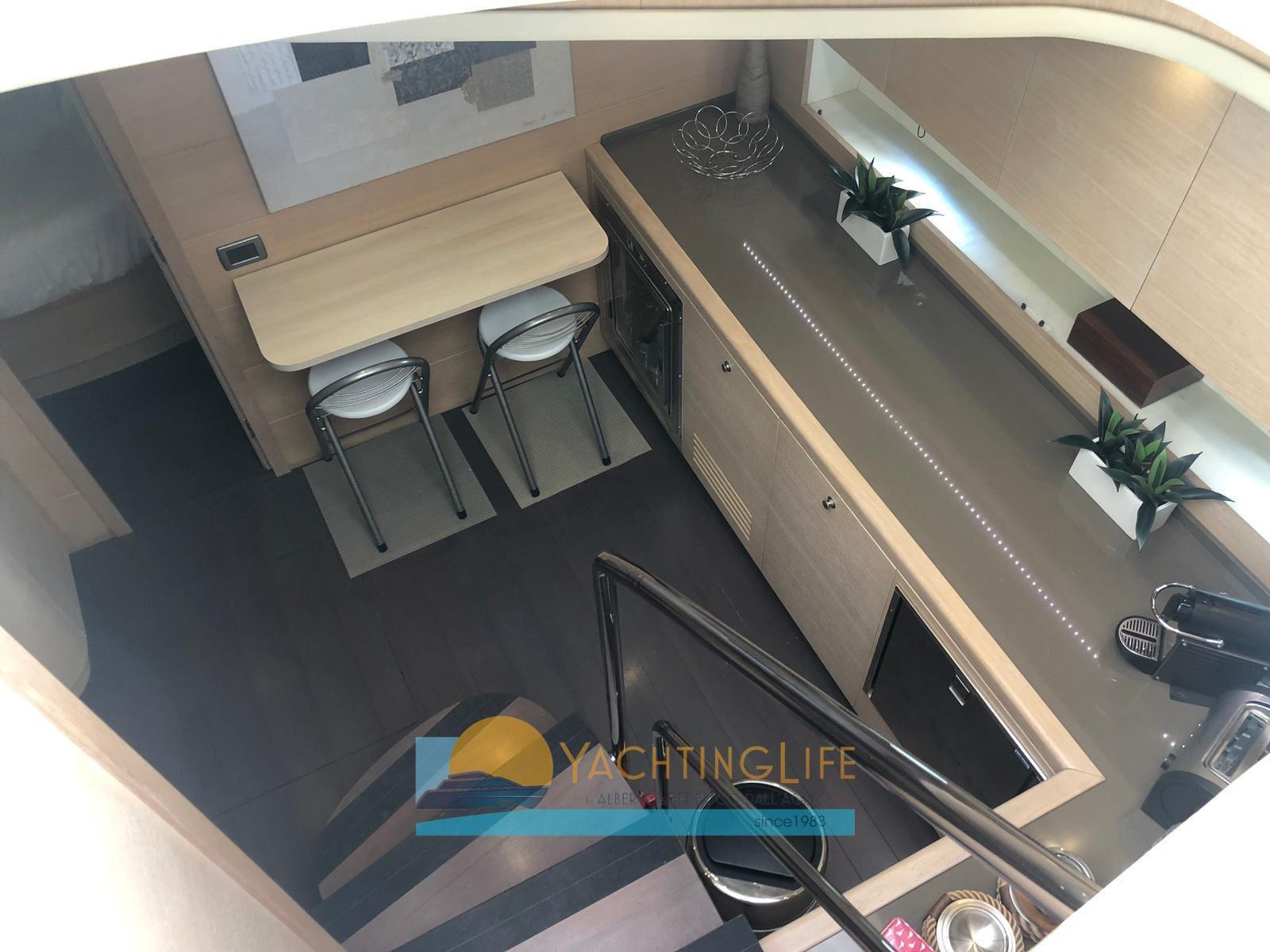 Alarme moteur, Alarme de pompe de cale, Eau sous pression, Passavant en teck, Douche de cockpit, Flaps hydrauliques, Hard top, Extincteur(s) fixe(s), Indicateurs de flaps, Éclairage de courtoisie, Passerelle, Plateforme arrière, Pompe de cale automatique, Porte latérale, Cockpit en teck, Prise de quai, Guindeau électrique, Echelle de bain, table de cockpit, Corne, Winch électrique arrière.