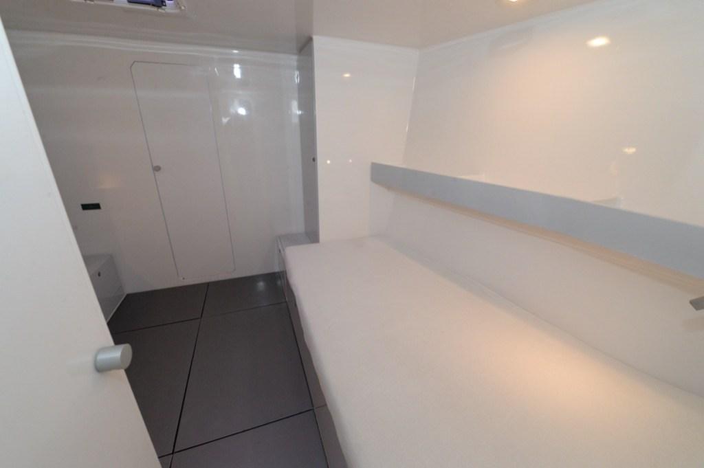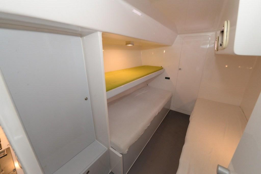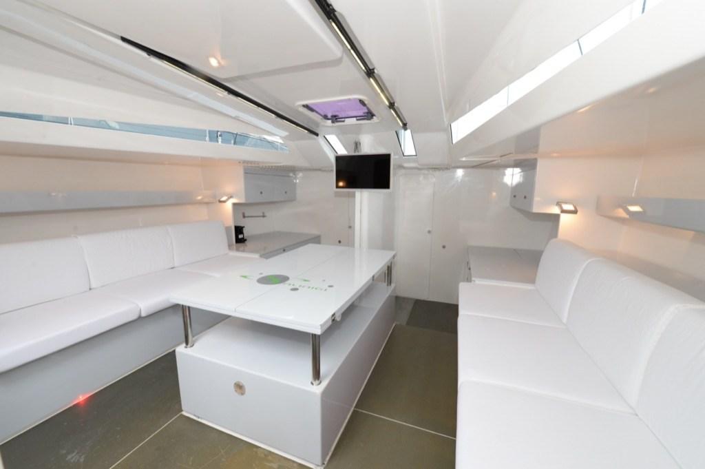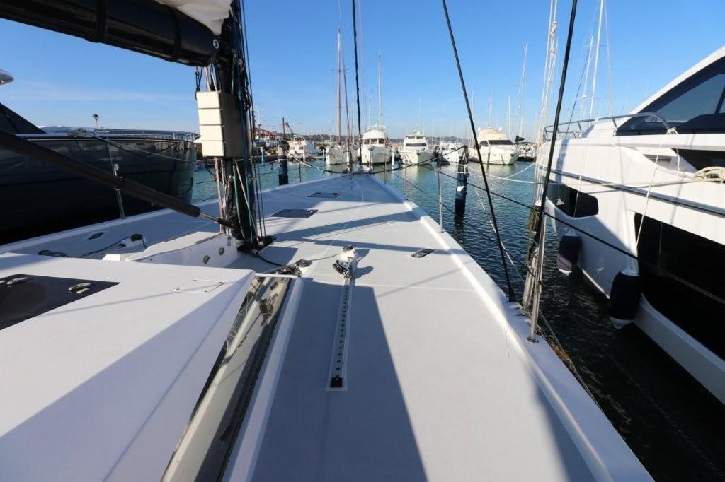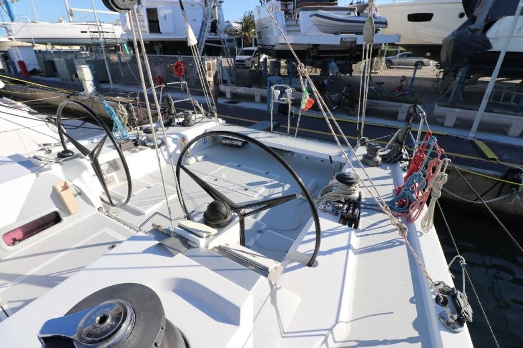 Alternateur, Ancre (BRUCE), Eau sous pression, 7 Batteries, Chargeur de batterie (VICTRON), Douche de cockpit, Double barre à roue, Propulseur d'étrave (RETRATTILE), Garage à annexe, Moteur d'annexe (3 CV), Défenses, Passerelle (CARBONIO), Plateforme arrière, Pompe de cale automatique, Prise de quai, Guindeau électrique, Echelle de bain, Annexe, 4 Winch, 2 Winch électrique, Windex.