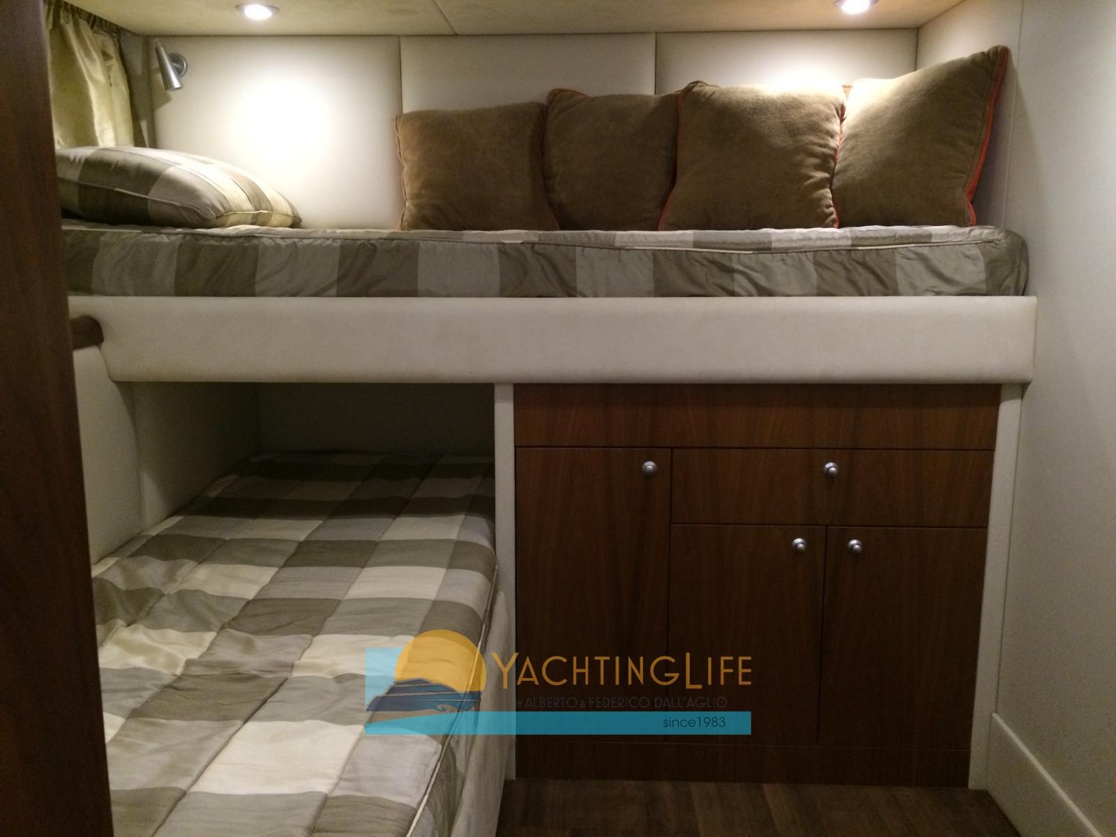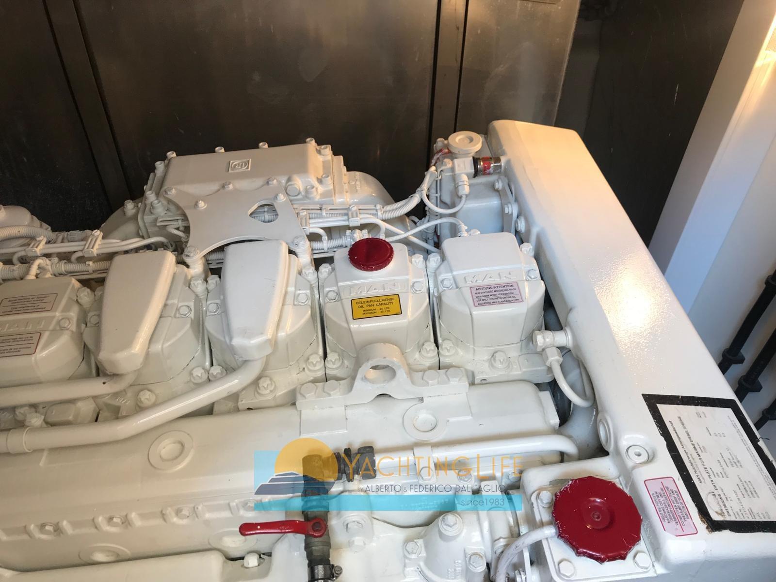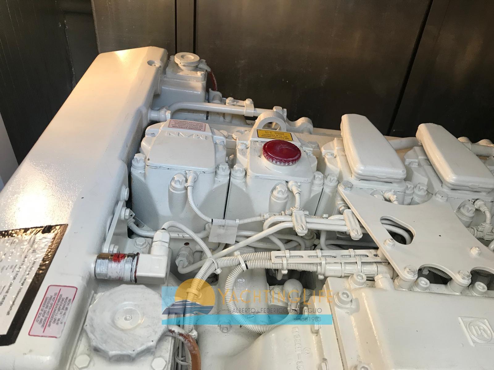 Alarme moteur, Alarme de pompe de cale, Eau sous pression, Passavant en teck, Douche de cockpit, Phare de poursuite, Flaps hydrauliques, Garage à annexe, Hard top, Extincteur(s) fixe(s), Indicateurs de flaps, Lavabo dans le cockpit, Éclairage de courtoisie, Spots sous-marins, Passerelle (idraulica), Plateforme arrière, Pompe de cale automatique, Porte latérale, Cockpit en teck, Prise de quai, Guindeau électrique, Echelle de bain, table de cockpit, Annexe (Williams 325), Corne, Winch électrique arrière.