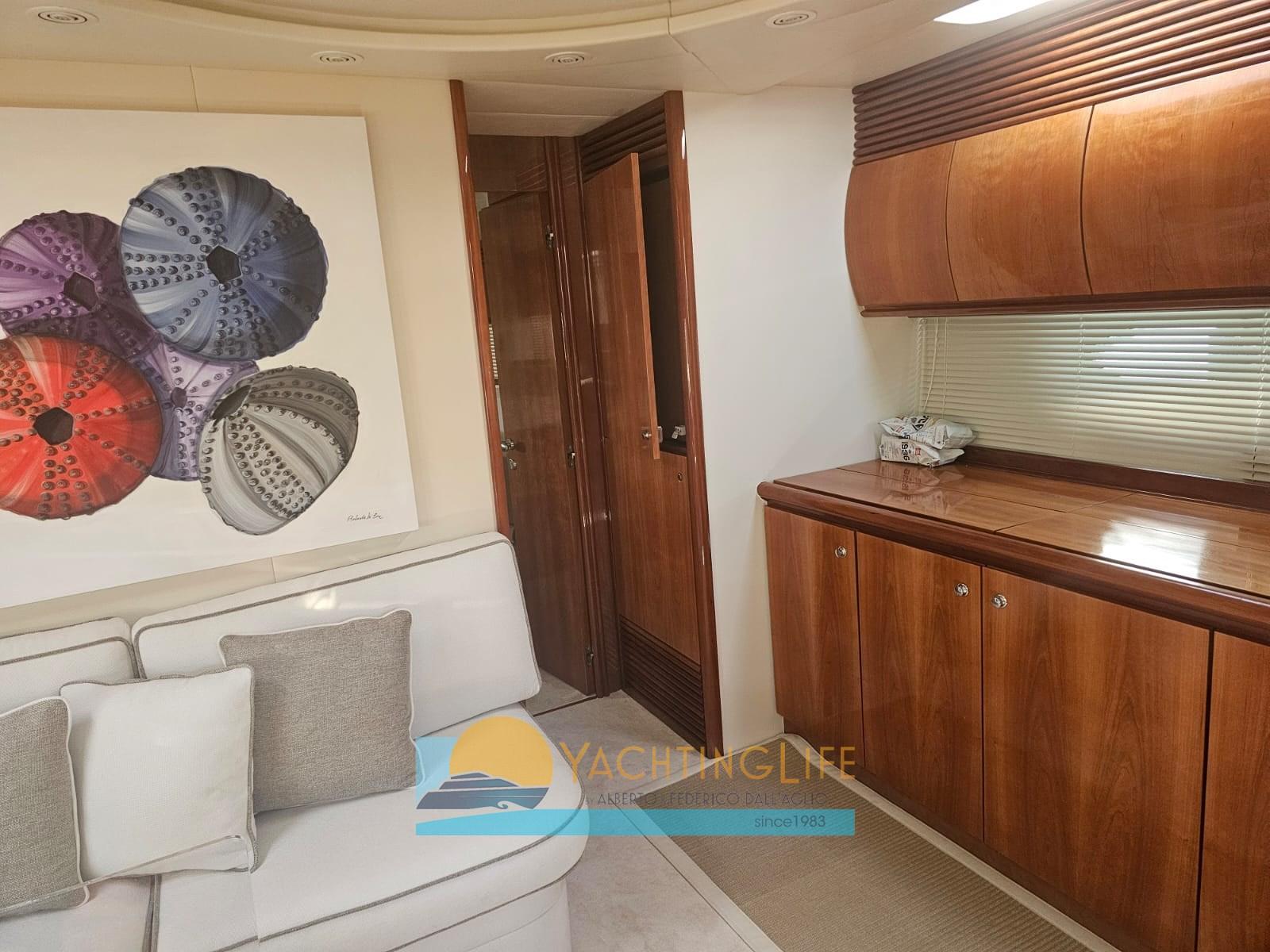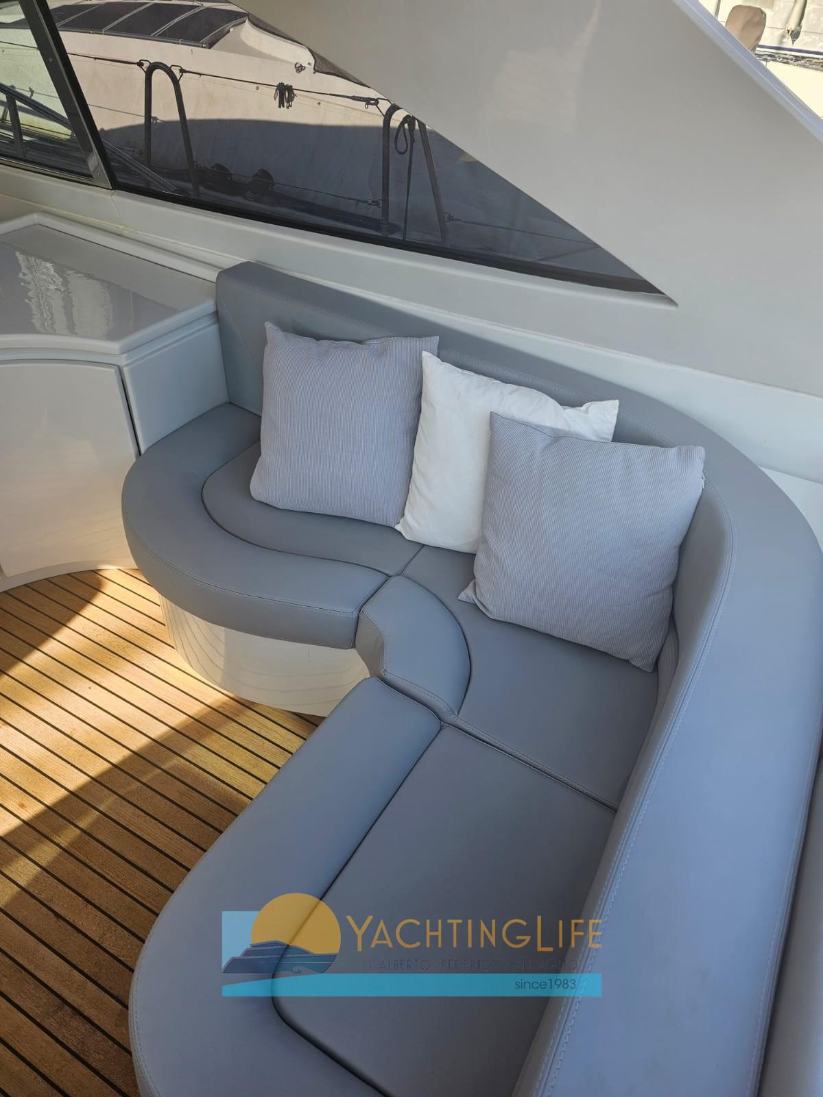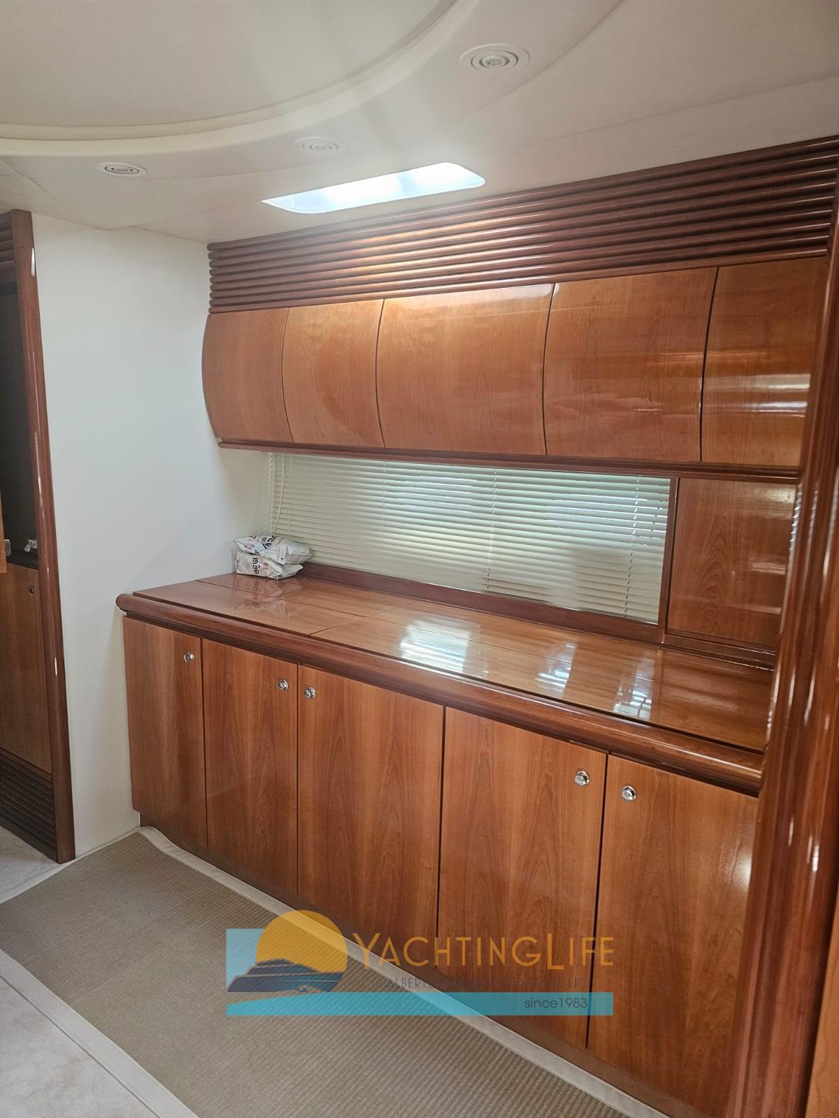 Alarme moteur, Alarme de pompe de cale, Eau sous pression, Douche de cockpit, Flaps hydrauliques, Hard top, Extincteur(s) fixe(s), Indicateurs de flaps, Éclairage de courtoisie, Passerelle (idraulica), Plateforme arrière, Pompe de cale automatique, Cockpit en teck, Prise de quai, Guindeau électrique, Echelle de bain, table de cockpit, Corne, Winch électrique arrière.