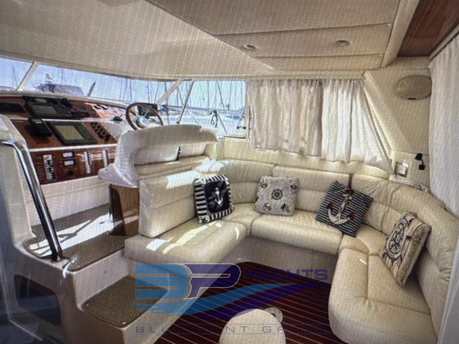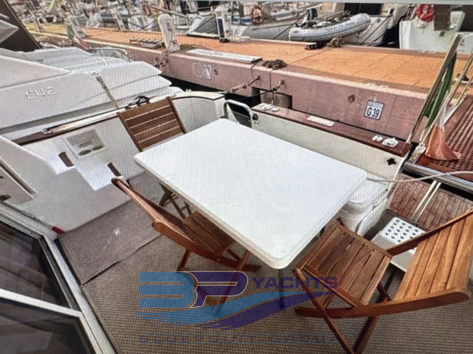 Eau sous pression, Passavant en teck, Câble d’alimentation à quai, Douche de cockpit, Double barre à roue, Flaps électriques, Spots sous-marins, Panneau solaire, Plateforme arrière, Pont en teck, Porte latérale, Cockpit en teck, Prise de quai, Onduleur, Répétiteur électronique, Guindeau électrique, Echelle de bain, table de cockpit.