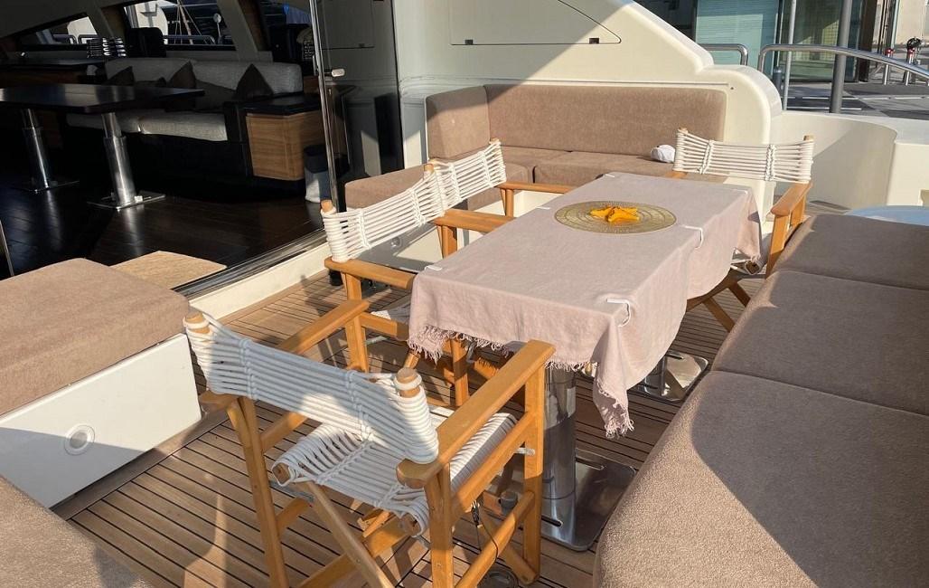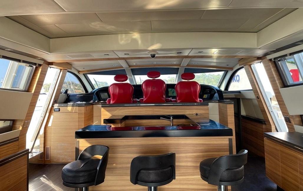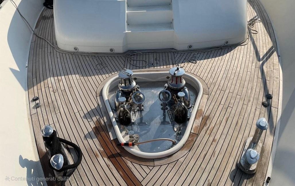 Alarme gaz, Alarme moteur, Alarme de pompe de cale, Eau sous pression, Trim hydraulique, Passavant en teck, Douche de cockpit, Phare de poursuite, Flaps hydrauliques, Garage à annexe, Grue pour jet-ski, Bossoirs pour annexe, Hard top, Extincteur(s) fixe(s), Indicateurs de flaps, Lavabo dans le cockpit, Éclairage de courtoisie, Jet-ski (Seadoo 155 Hp), Passerelle (idraulica), Plateforme arrière, Pompe de cale automatique, Pont en teck, Porte latérale, 2 Porte latérale, Cockpit en teck, Prise de quai, Connexion eau sous pression à quai, Guindeau électrique, Echelle de bain, table de cockpit, Table pliante de salon, Annexe, Corne, 2 Winch électrique arrière.