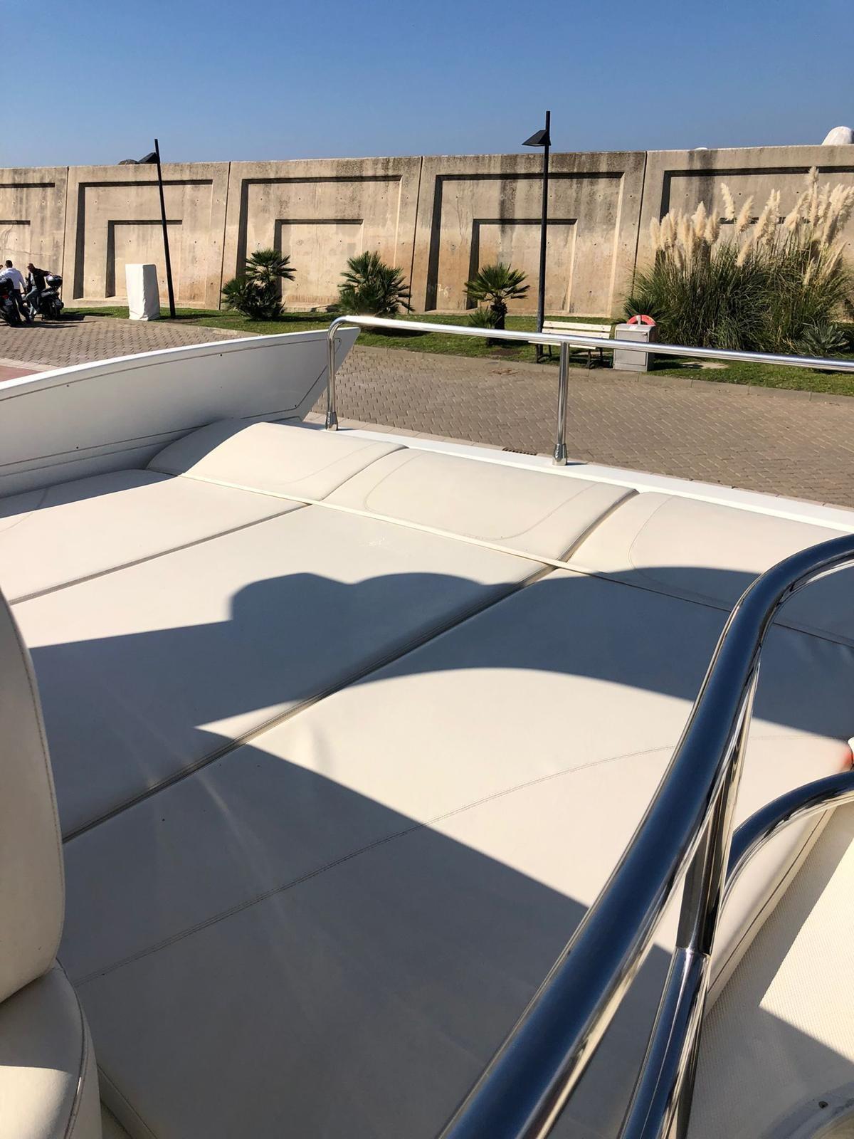 Alarme moteur, Alarme de pompe de cale, Alternateur, Douche de cockpit, Extincteur(s) fixe(s), Lavabo dans le cockpit, Éclairage de courtoisie, Spots sous-marins, Passerelle, Pompe de cale automatique, Pompe de cale manuelle, Pont en teck, Cockpit en teck, Prise de quai, Connexion eau sous pression à quai, Guindeau Hydraulique, Echelle de bain, Selles pour Annexe, Annexe, Corne, Winch électrique arrière, Winch électrique avant.