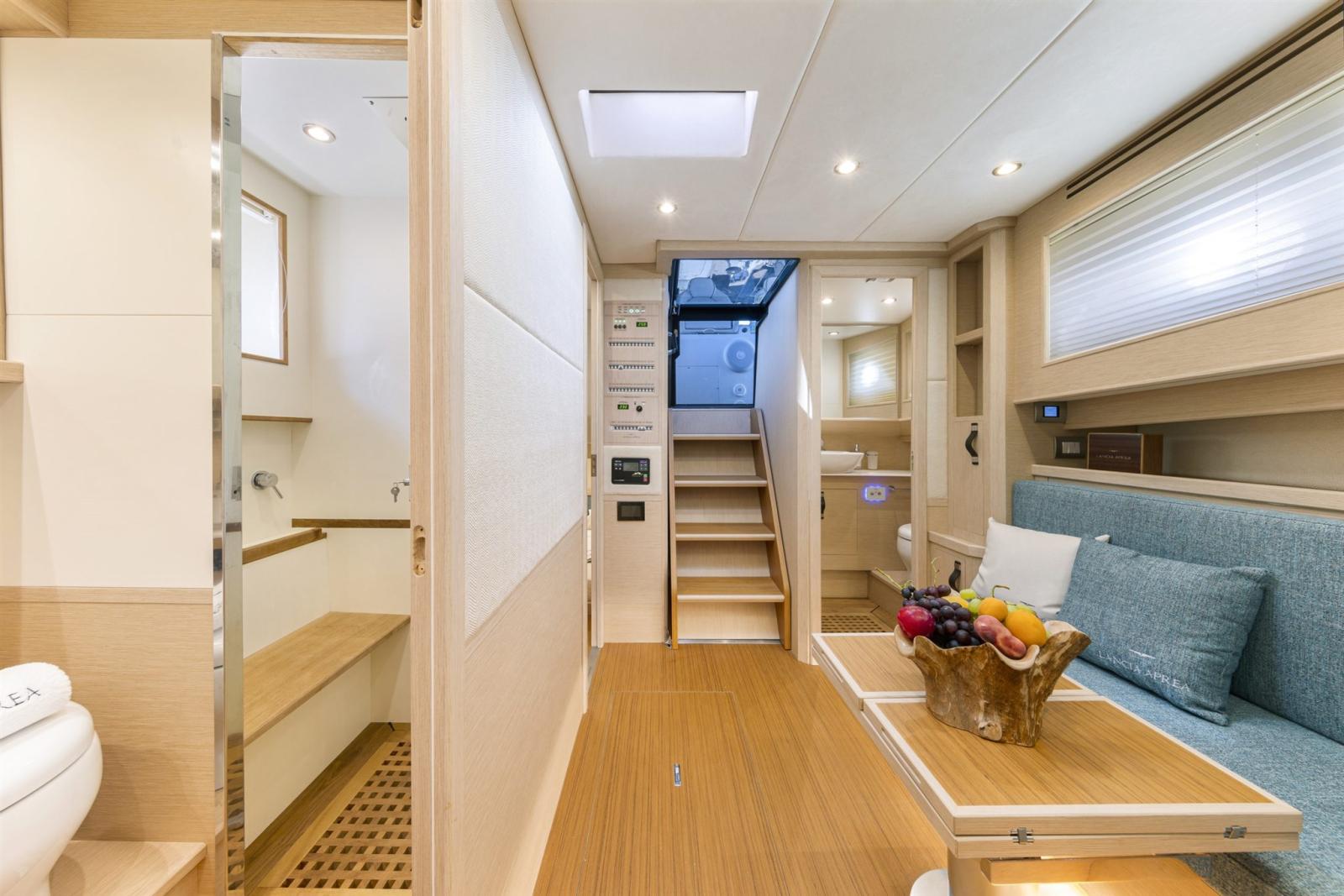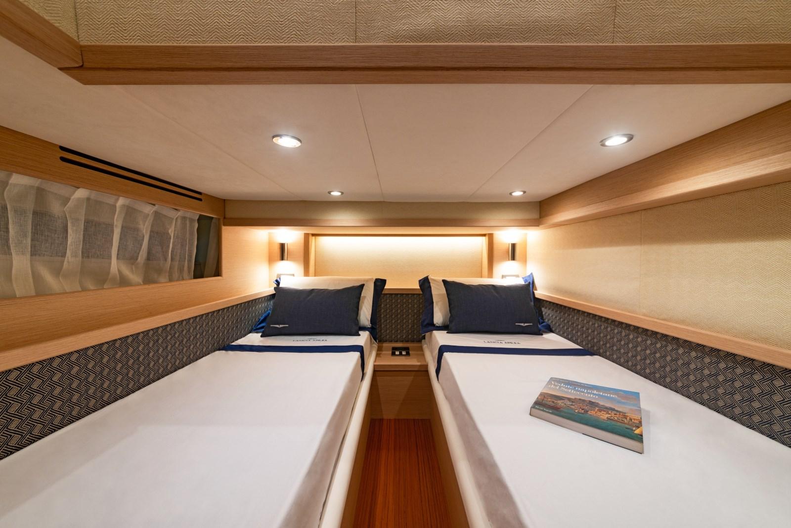 CABINE PRINCIPALE + DOUBLE ÉTAGE VIP + CABINE DE RANGEMENT + ÉQUIPAGE + 3 SALLES DE BAINS