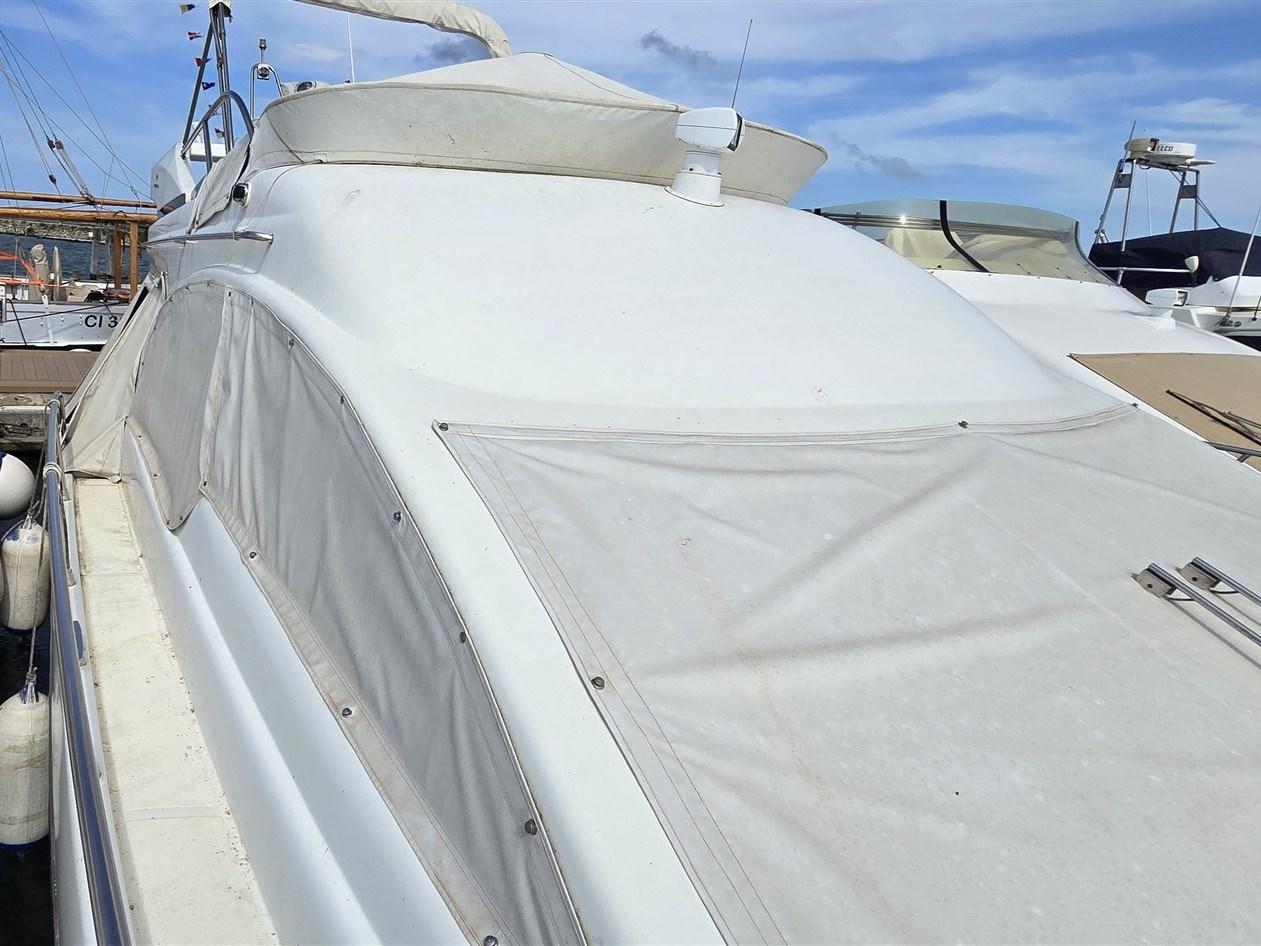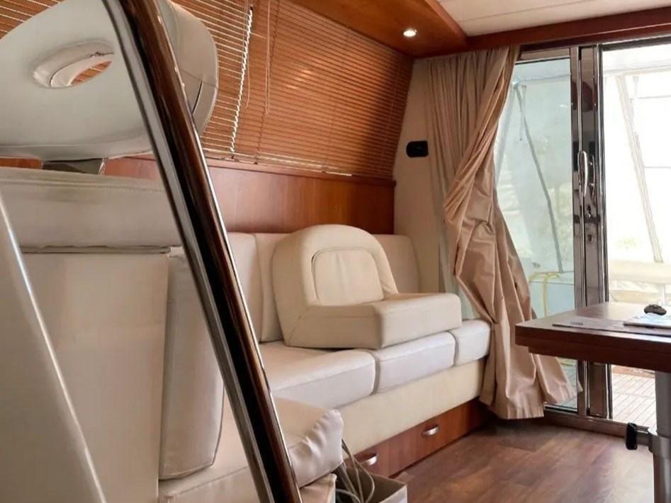 Alarme gaz, Alarme moteur, Alarme de pompe de cale, Eau sous pression, 5 Batteries, Douche de cockpit, Double barre à roue, Phare de poursuite, 2 Flaps hydrauliques, Passerelle (idraulica OPACMARE), Plateforme arrière, Pompe de cale automatique, Pompe de cale manuelle, Cockpit en teck, Prise de quai, Onduleur, Rollbar, Guindeau électrique, Echelle de bain, Système de filtration des eaux usées, table de cockpit.