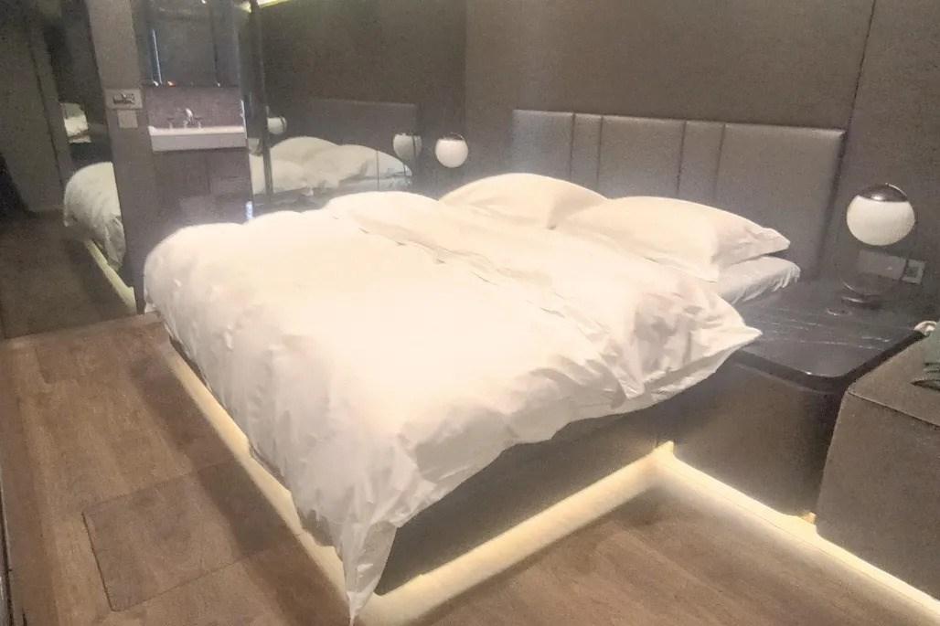 1 cabine d’équipage avec lits plats et salles de bains avec entrée indépendante depuis le cockpit