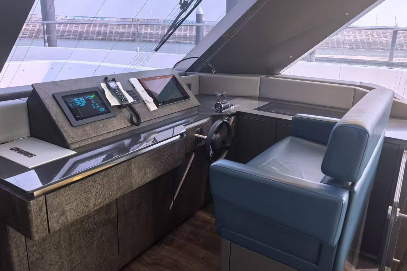 Bimini (RIGIDO IN COMPOSITO SUL FLYBRIDGE CON TETTO ELETTRICO, LUCI INTEGRATE E CON COPERTURE), Sellerie complète, Coussins arrieres, Coussin avant, Sellerie de fly, sellerie de cockpit, Taud de console, Rideaux.
