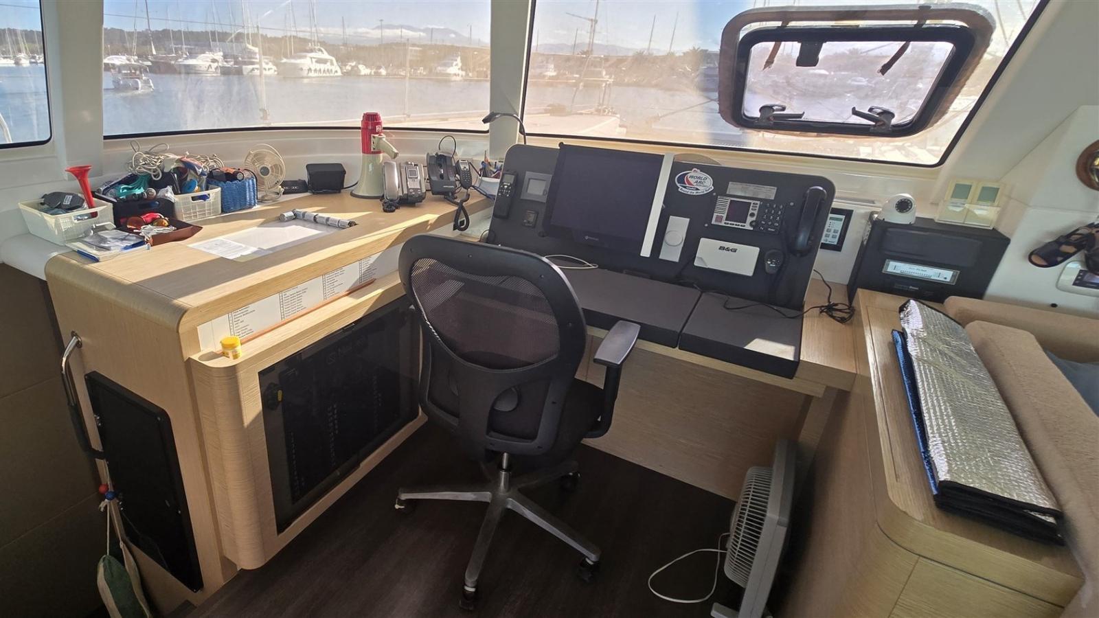 AIS, Antenne radar (24NM B&G), 2 Compas, Contrôle électronique du moteur, Compteur de chaîne (QUICK), Écran multifonction, DSC VHF (B&G), Échosondeur (B&G), Epirb, Fleet One (voix - internet), Journal de bord (B&G), Contrôleur Pactor, Pilote automatique (B&G), Traceur avec antenne GPS (B&G sur les deux systèmes de direction 12"), Radar (B&G), Radio VHF (B&G), SSB (B&G), Station éolienne (B&G), 2 Téléphones satellite (THURAYA - IRIDIUM)