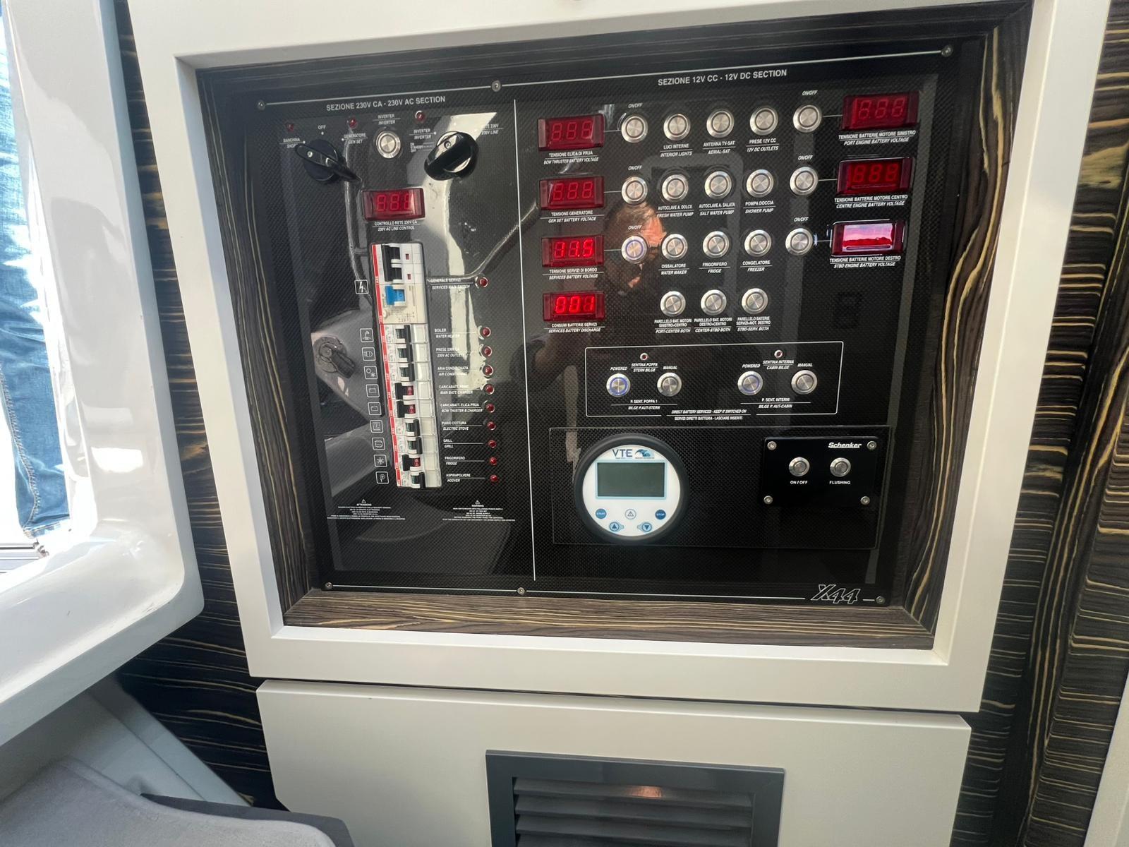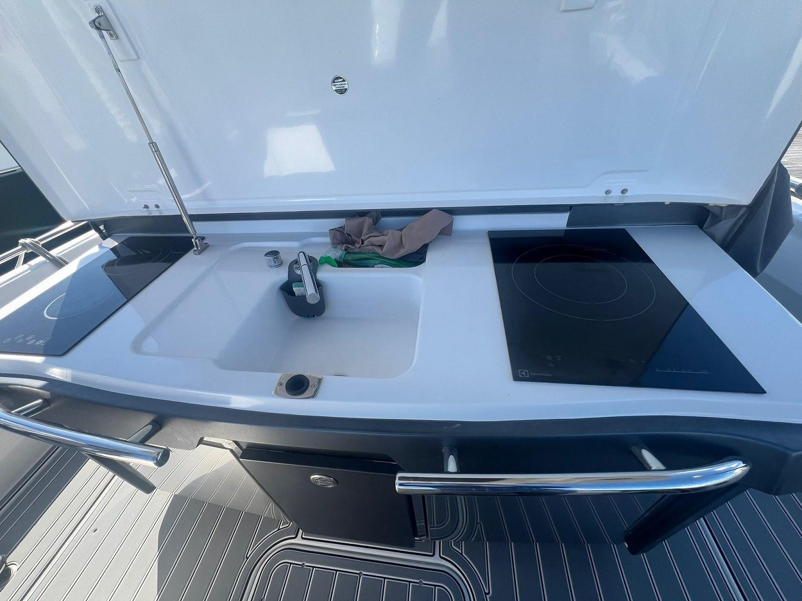 2 Douche de cockpit, Propulseur d'étrave (JET THRUSTER HOLLAND MARINE), Lavabo dans le cockpit, Spots sous-marins, Passerelle (in carbonio), Prise de quai, Guindeau électrique, Echelle de bain, table de cockpit, T-Top.