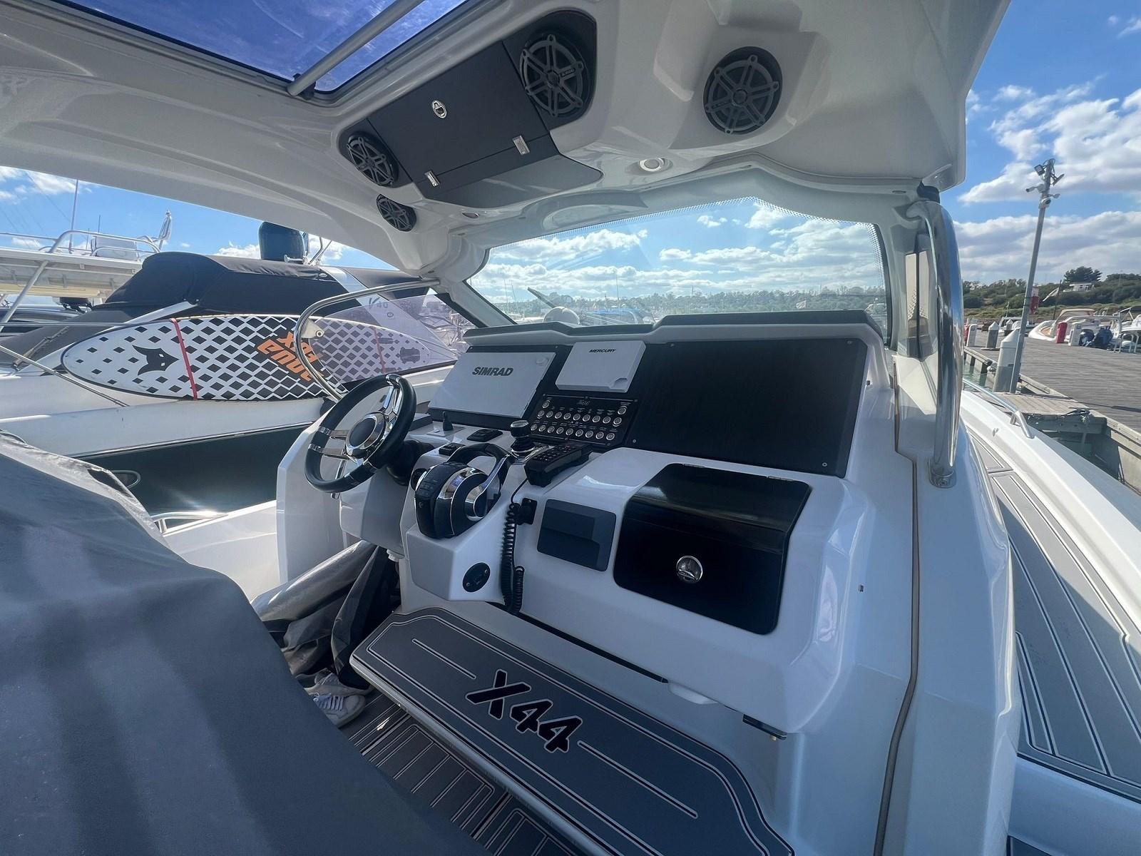 Moniteur, Sondeur pêche (SIMRAD), Joystick (MERCURY), Pilote automatique (SIMRAD), Plotter GPS (SIMRAD NSS EVO II 16"), Siège copilote.