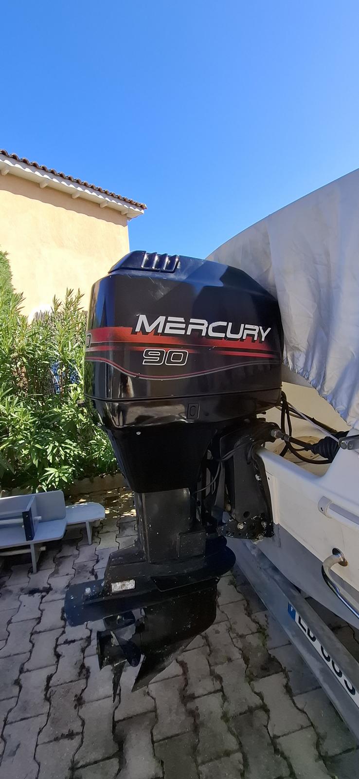 Le Mercury 90 CV 2 temps est en très bel état :