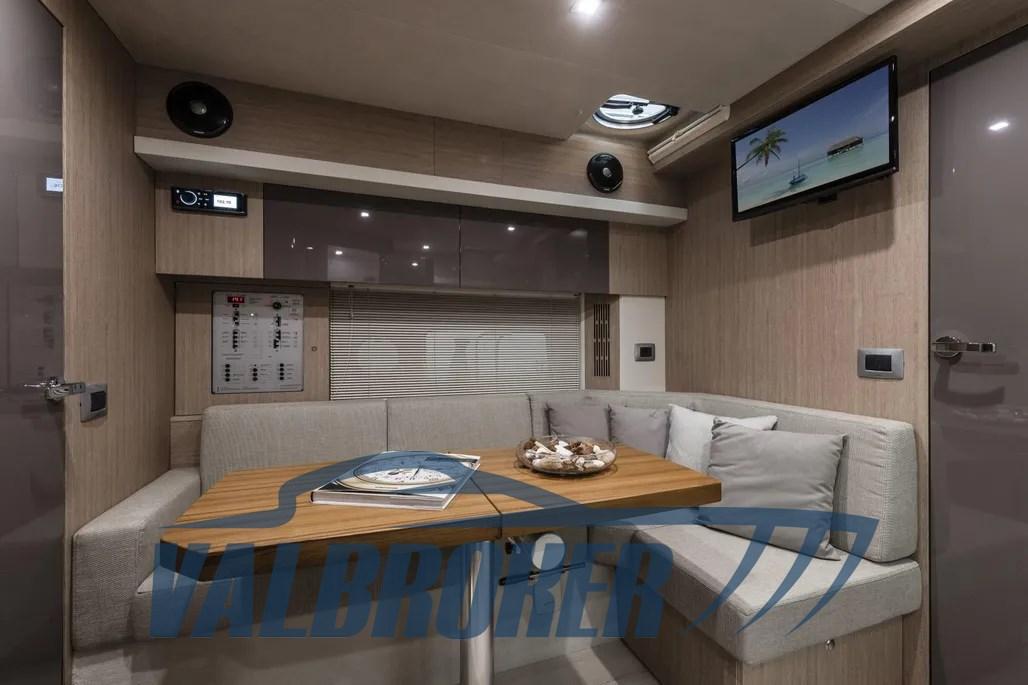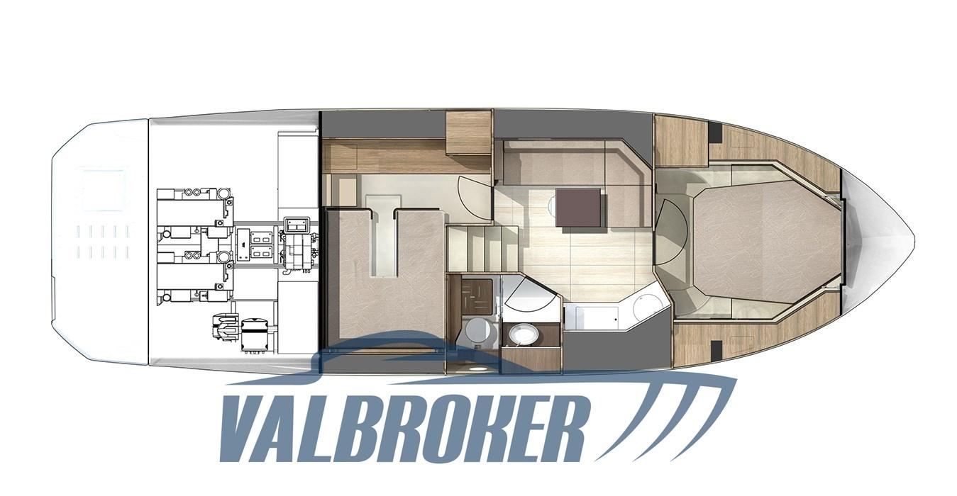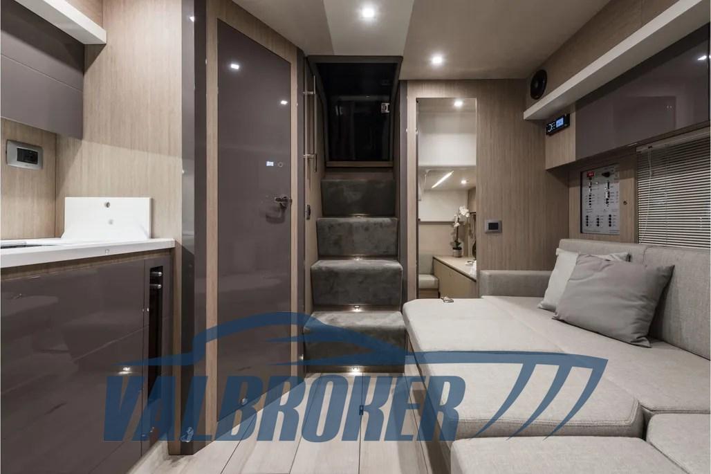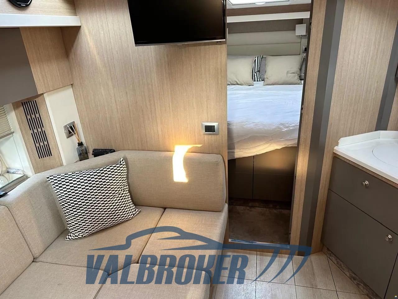 Voiture de sport 2023 équipée d’un rail commun diesel turbo Volvo Penta D4 de 2x270 ch avec très peu d’heures de conduite ! Sous le pont, il y a une cabine principale à la proue, une cabine d’amis avec deux lits plats, une salle à manger décapotable et une salle de bain avec douche.