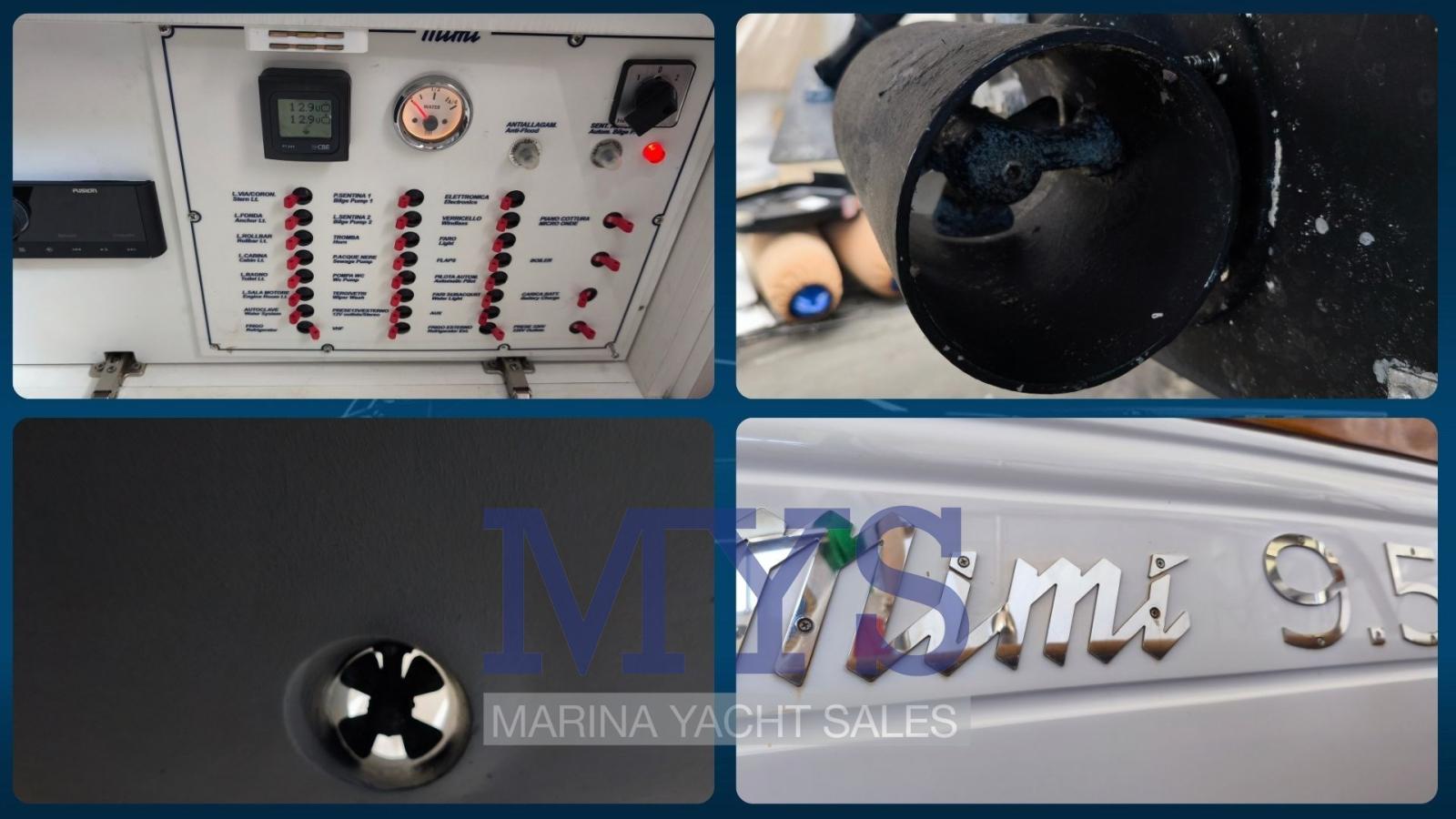 Alarme moteur, Alarme de pompe de cale, Ancre (Delta kg. 10 + mt. 50 di catena), Eau sous pression, Batteries (2 x 100 Ah), Passavant en teck, Câble d’alimentation à quai, Douche de cockpit, Phare de poursuite, Flaps hydrauliques, Hard top, Extincteur(s) fixe(s), Lavabo dans le cockpit, Éclairage de courtoisie, Moniteur de batterie, Plateforme arrière (in teak), Pompe de cale automatique, Pompe de cale manuelle, Porte latérale, Cockpit en teck, Prise de quai, Guindeau électrique, Echelle de bain, table de cockpit, Corne, Pont en teck.