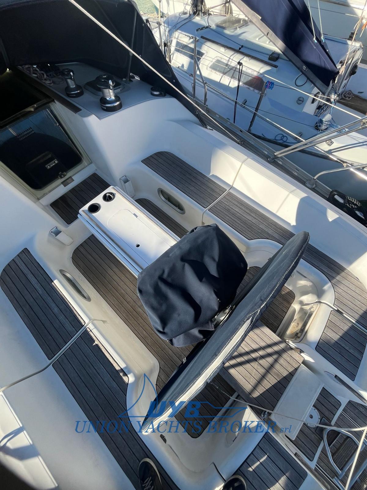 Alternateur, Passavant en teck, Passerelle, Plateforme arrière (strutturale), Pompe de cale manuelle, Cockpit en teck, Guindeau électrique, Echelle de bain, table de cockpit.