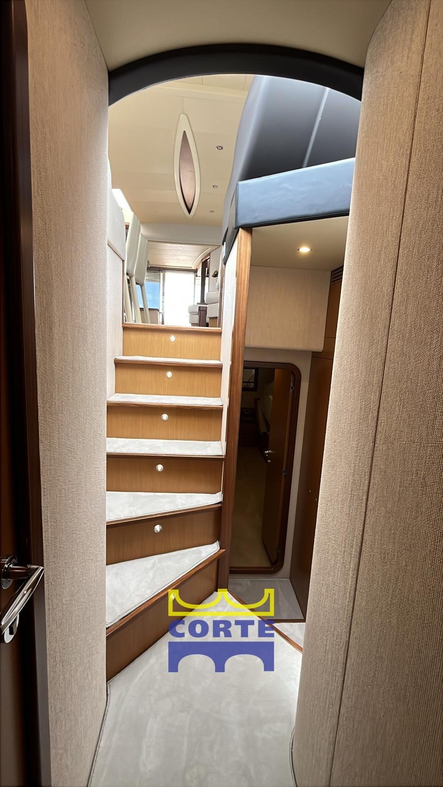 Alarme gaz, Alarme moteur, Alarme de pompe de cale, Eau sous pression, Câble d’alimentation à quai, Douche de cockpit, Double barre à roue, Phare de poursuite, Flaps hydrauliques, Bossoirs pour annexe (passerella), Extincteur(s) fixe(s), Indicateurs de flaps, Lavage de chaine, Lavabo dans le cockpit, Éclairage de courtoisie, Moniteur de batterie, Passerelle (elettroidraulica), Plateforme arrière (poppa in teak con gavone ad apertura elettrica), Pompe de Vidange du Réservoir d’Eaux Usées, Pompe de cale automatique, Pompe de cale manuelle, Pont en teck, Porte latérale, Porte latérale, Cockpit en teck, Prise de quai, Connexion eau sous pression à quai, Répétiteur électronique, Rollbar, Guindeau électrique, Echelle de bain, table de cockpit, Corne, 2 Winch électrique arrière, Winch électrique avant.