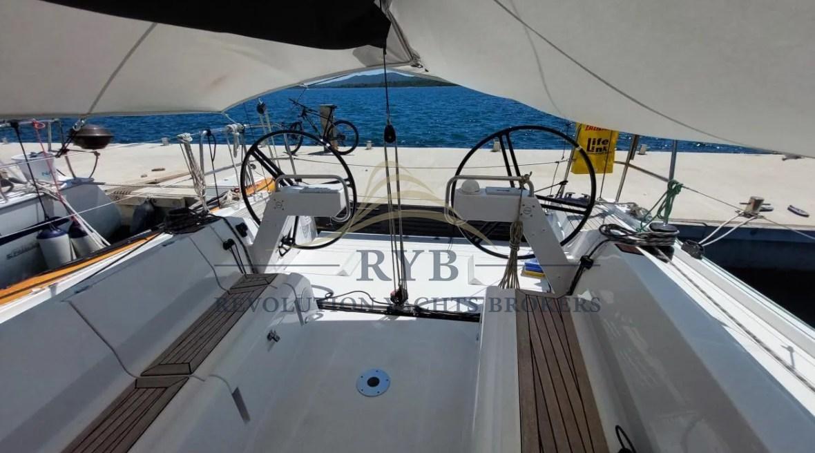 Douche de cockpit, Double barre à roue, Éclairage de courtoisie, Cockpit en teck, Prise de quai, table de cockpit, 6 Winch.