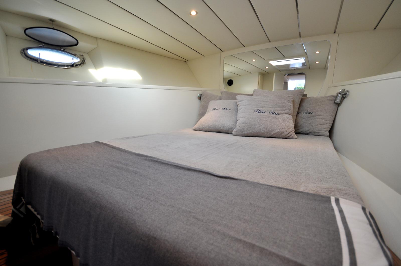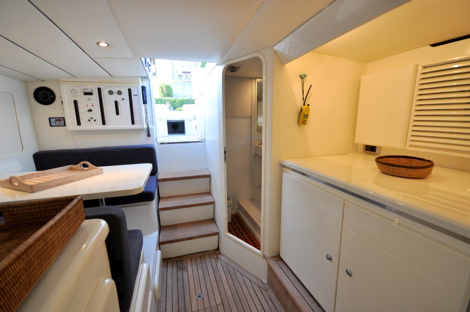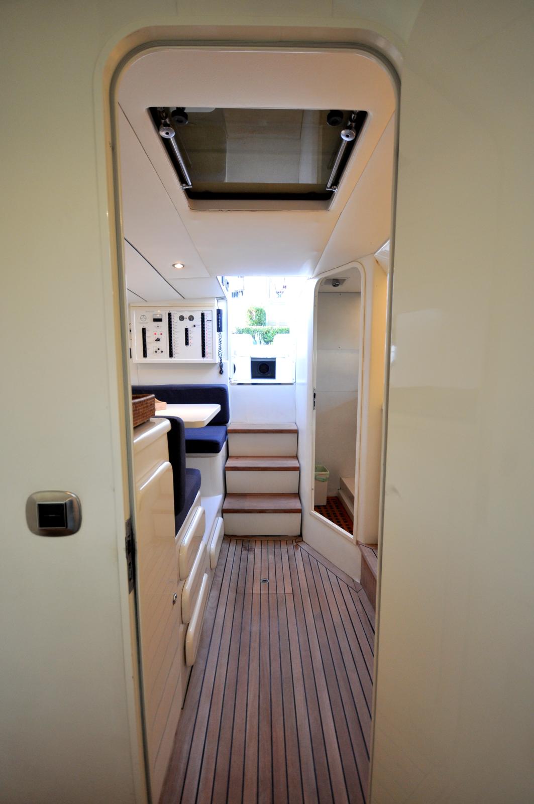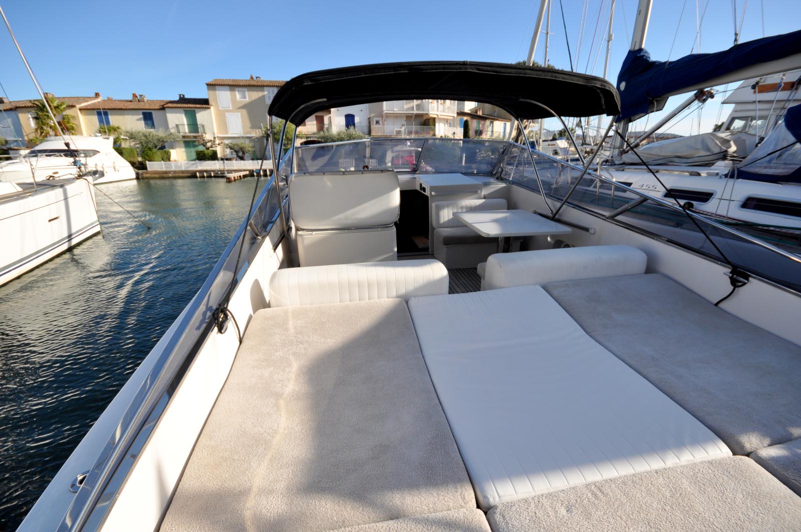 Le cockpit spacieux offre un bel espace de vie extérieur, parfaitement adapté à la détente et aux moments de convivialité en mer. À l’intérieur, le bateau propose un aménagement fonctionnel avec une cabine confortable, un espace salon et une salle d’eau, permettant d’envisager également des escapades de courte durée.