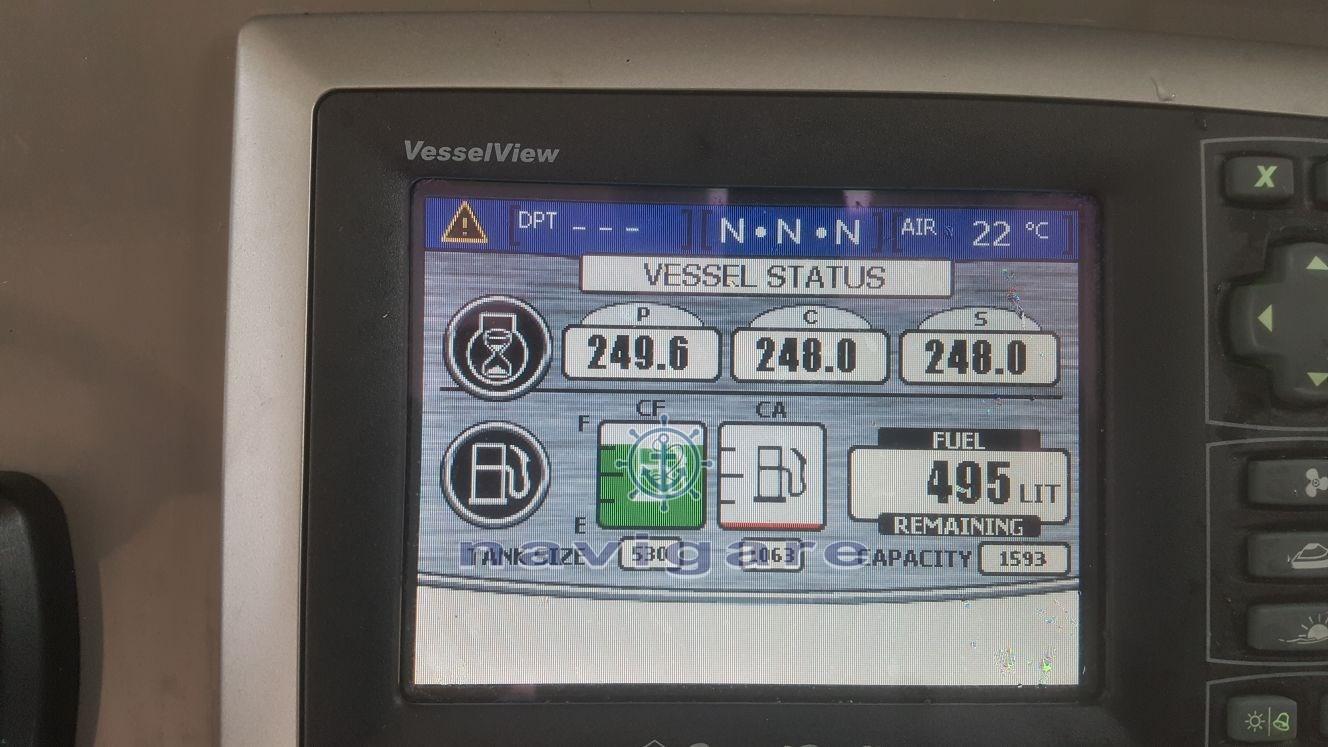 Coin bar, radar antenne, la commande moteur électronique, ordinateur de bord, compteur de vitesse, affiche, sondeur, pilote automatique, traceur avec une antenne GPS, VHF Radio.