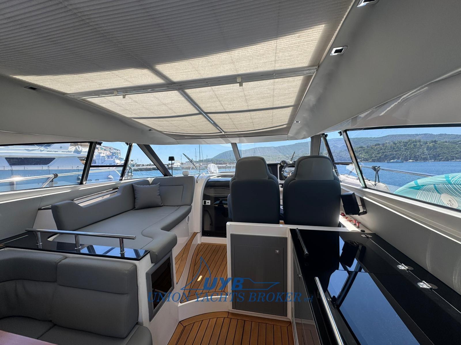Eau sous pression, Hard top, Passerelle, Plateforme arrière, Pompe de cale manuelle, Porte latérale, Cockpit en teck, Prise de quai, Guindeau électrique, Echelle de bain, table de cockpit, Winch électrique arrière.