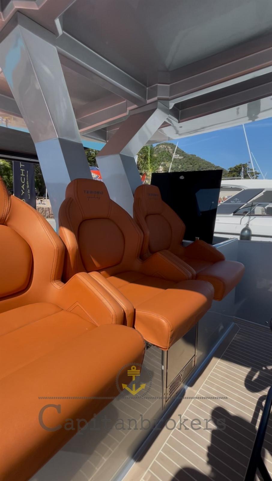 Alarme moteur, Alarme de pompe de cale, Ouverture du compartiment moteur électrique, Eau sous pression, Passavant en teck (Flexeteek), Hard top, Lavabo dans le cockpit, Éclairage de courtoisie, Plateforme arrière (flexiteek), Pompe de cale automatique, Pompe de cale manuelle, Cockpit en teck (flexiteek), Prise de quai, Connexion eau sous pression à quai, Guindeau électrique, Echelle de bain, table de cockpit, Corne.