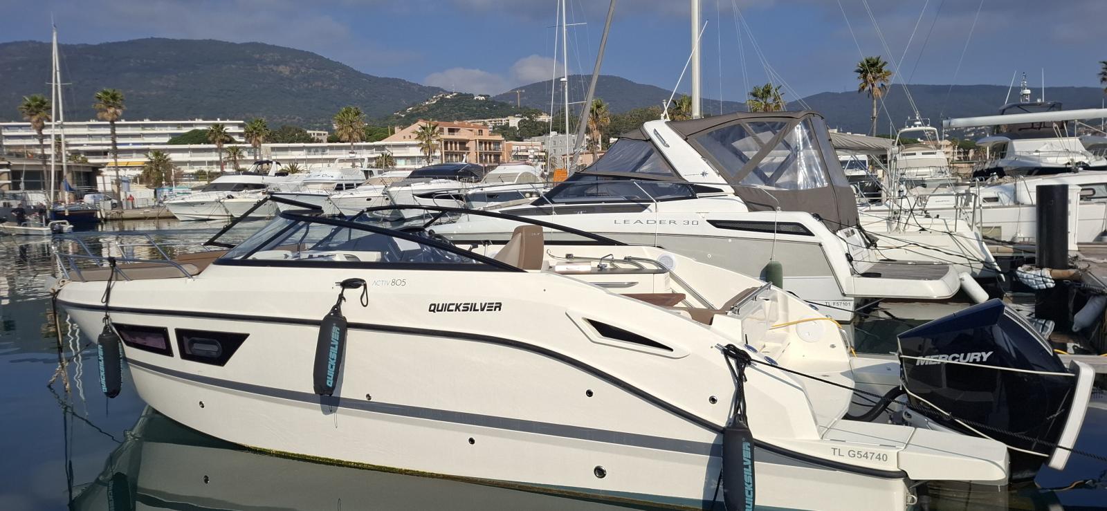 Superbe Quicksilver 805 ACTIV , cette unité retient une attention particulière accordée aux détails, l’Activ 805 Cruiser est un modèle phare conçu pour la croisière de jour. Vous apprécierez ce modèle pour son élégance, sa puissance, sa sécurité et son confort. Équipé d’une simple motorisation de 300 chevaux et permettant d’accueillir jusqu’à neuf personnes à bord pour une sortie de jour, le sport, le loisir en famille ou entre amis, l’Activ 805 Cruiser propose le summum de la détente et de la performance sur l’eau.