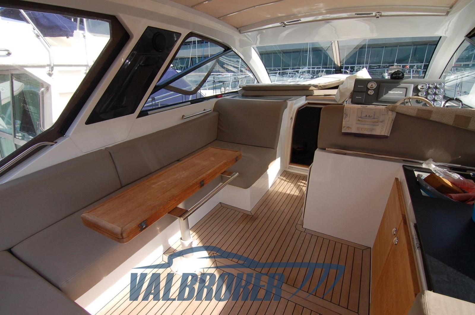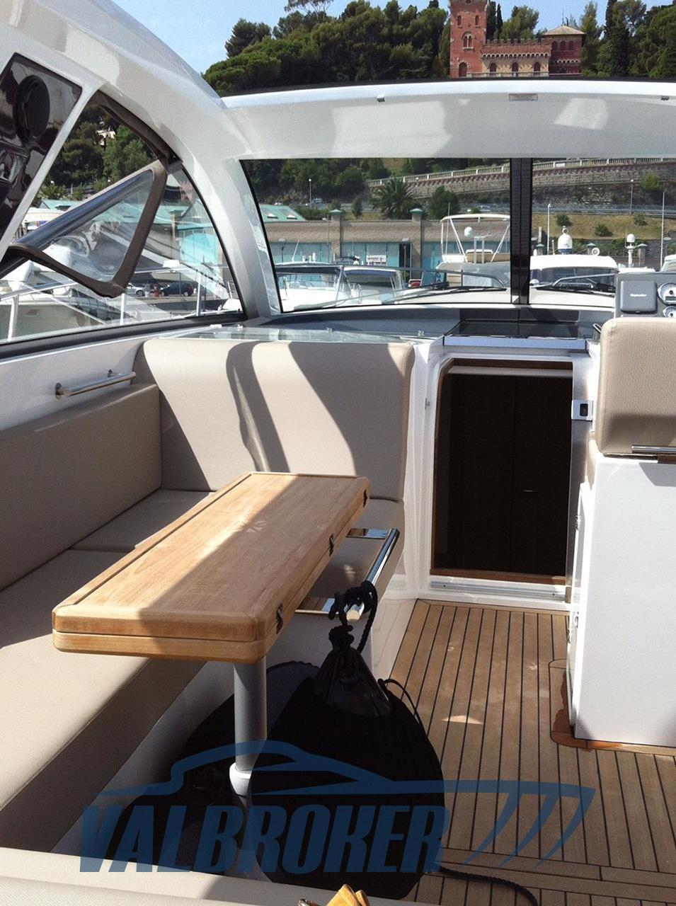 Vendu par nos soins Valbroker neuf en 2013 à notre client. Propriétaire unique. Année modèle 2012, Luxury Special 40th Anniversary Sealine Version (intérieur en bois de chêne) très fine et bien finie. ÉDITION LIMITÉE !! Stocké dans le hangar chaque hiver avec liquide de refroidissement et lavage du système. 2x Volvo Penta D4 300 Hp diesel Common Rail. L’un des derniers produits par Sealine UK. Probablement le bateau le plus beau et le mieux entretenu de toute la Méditerranée. Pavois peints de couleur glace, uniques, beaux avec des moteurs puissants et une plate-forme arrière allongée Sealine d’origine. Commandes électroniques de dernière génération. Entretien complet des transmissions arrière et des moteurs (boîte de vitesses des roues, huiles, filtres) effectué annuellement par un centre de service agréé Volvo Penta (Motonautica Cuneo - Gênes).