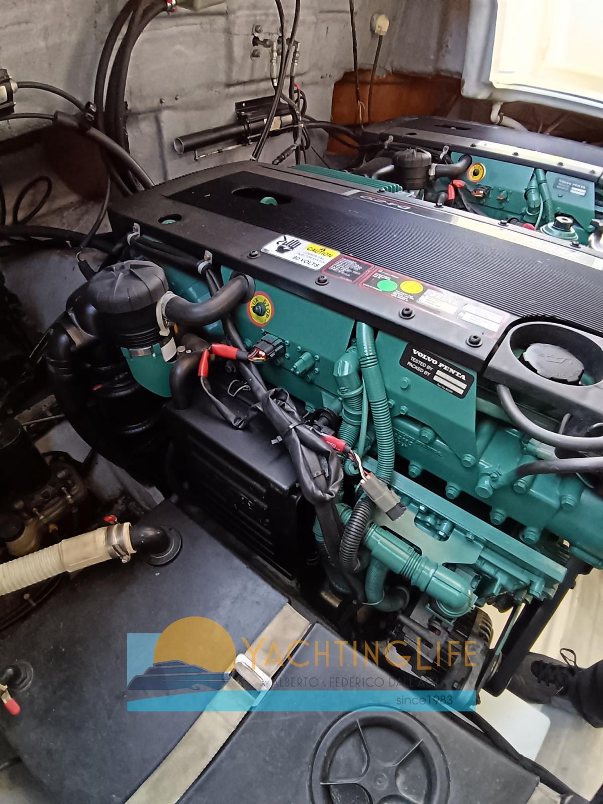 Alarme moteur, Ouverture du compartiment moteur électrique, Câble d’alimentation à quai, Flaps hydrauliques, Hard top, Indicateurs de flaps, Lavabo dans le cockpit, Éclairage de courtoisie, Défenses, Passerelle (idraulica), Plateforme arrière, Pompe de cale automatique, Cockpit en teck, Prise de quai, Guindeau électrique, Echelle de bain, table de cockpit, Table pliante de salon.