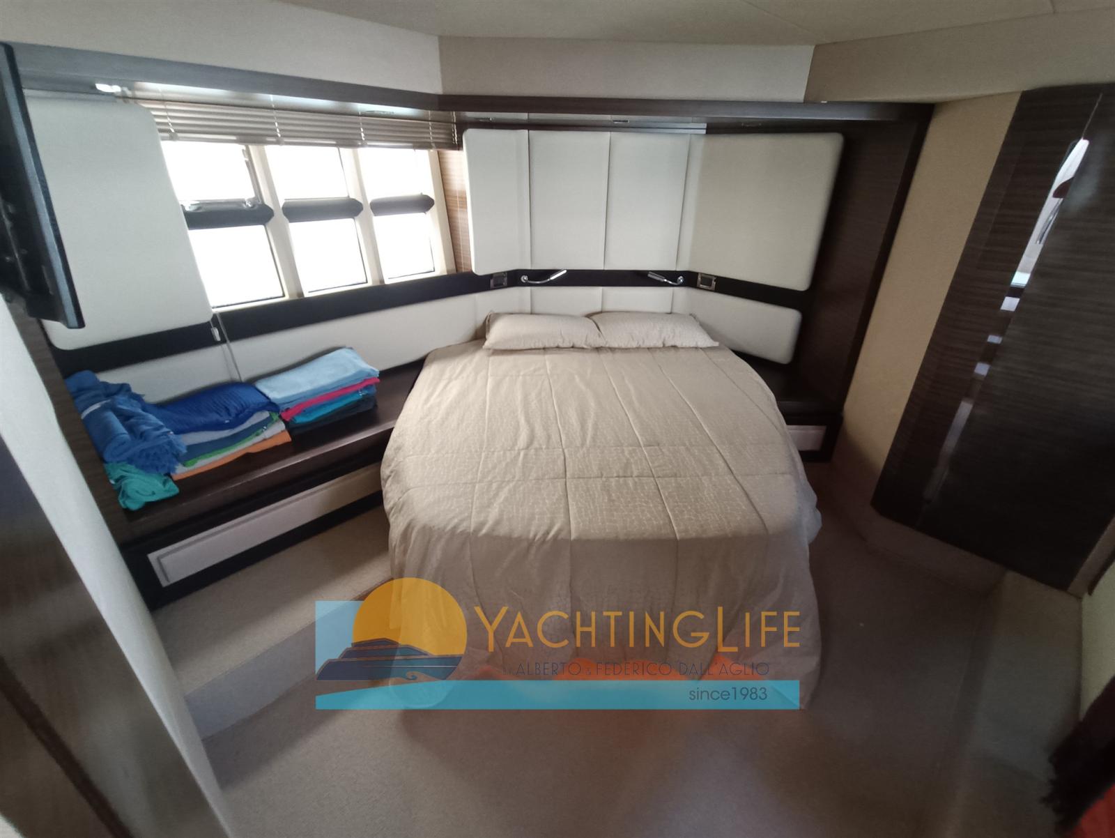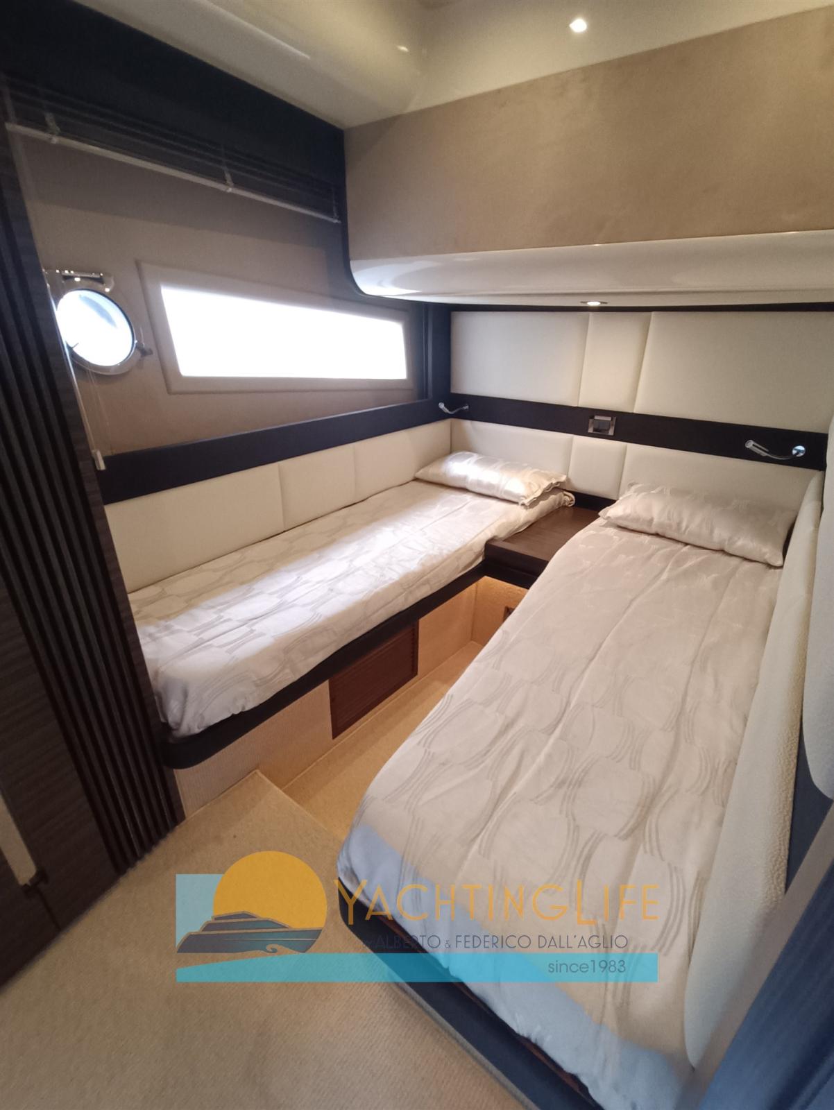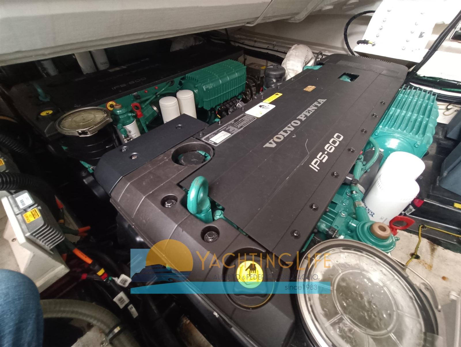 Alarme moteur, Alarme de pompe de cale, Eau sous pression, Douche de cockpit, Flaps électriques, Garage à annexe, Hard top, Indicateurs de flaps, Éclairage de courtoisie, Passerelle (idraulica a scomparsa), Plateforme arrière (idraulica), Pompe de cale automatique, Porte latérale, Cockpit en teck, Prise de quai, Guindeau électrique, Echelle de bain, Selles pour Annexe, table de cockpit, Corne, Winch électrique arrière.