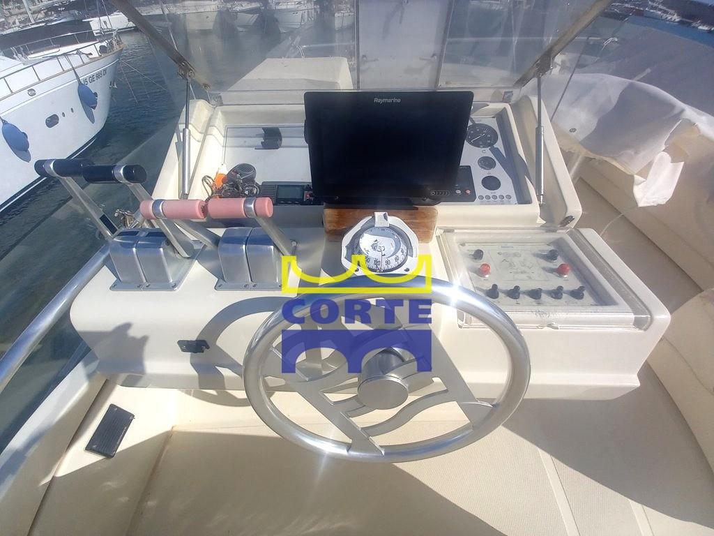 Alarme moteur, Alarme de pompe de cale, Eau sous pression, Câble d’alimentation à quai, Douche de cockpit, Double barre à roue, Phare de poursuite, Flaps hydrauliques, Bossoirs pour annexe (passerella), Extincteur(s) fixe(s), Indicateurs de flaps, Lavage de chaine, Lavabo dans le cockpit, Éclairage de courtoisie, Moteur hors-bord pour annexe, Défenses, Passerelle (elettro idraulica Besenzoni), Plateforme arrière (poppa), Pompe de cale automatique, Porte latérale, Cockpit en teck, Prise de quai, Connexion eau sous pression à quai, Rollbar, Guindeau électrique, Echelle de bain, table de cockpit, Annexe, Corne, 2 Winch électrique arrière, Winch électrique avant.
