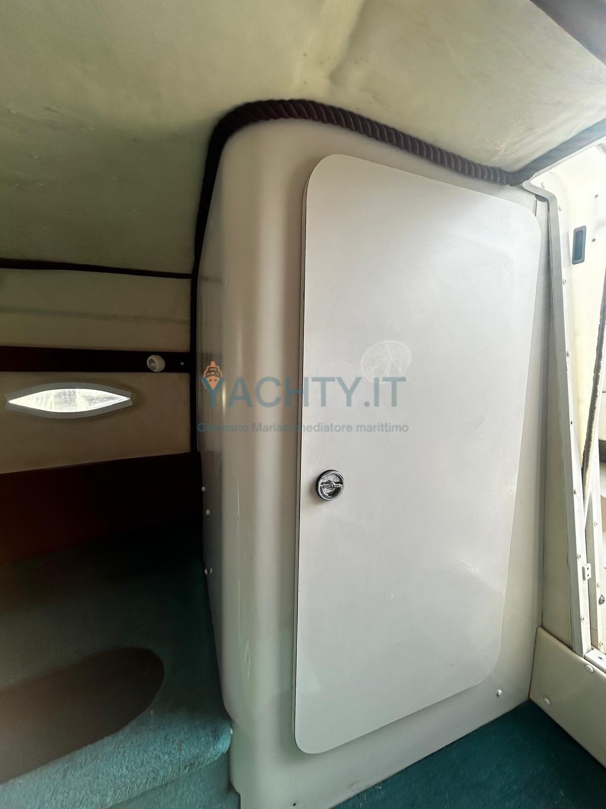 Piede bravo III, réaménagement esthétique intérieur et extérieur en 2021/22. Accès pratique à la proue par le pare-brise qui s’ouvre
