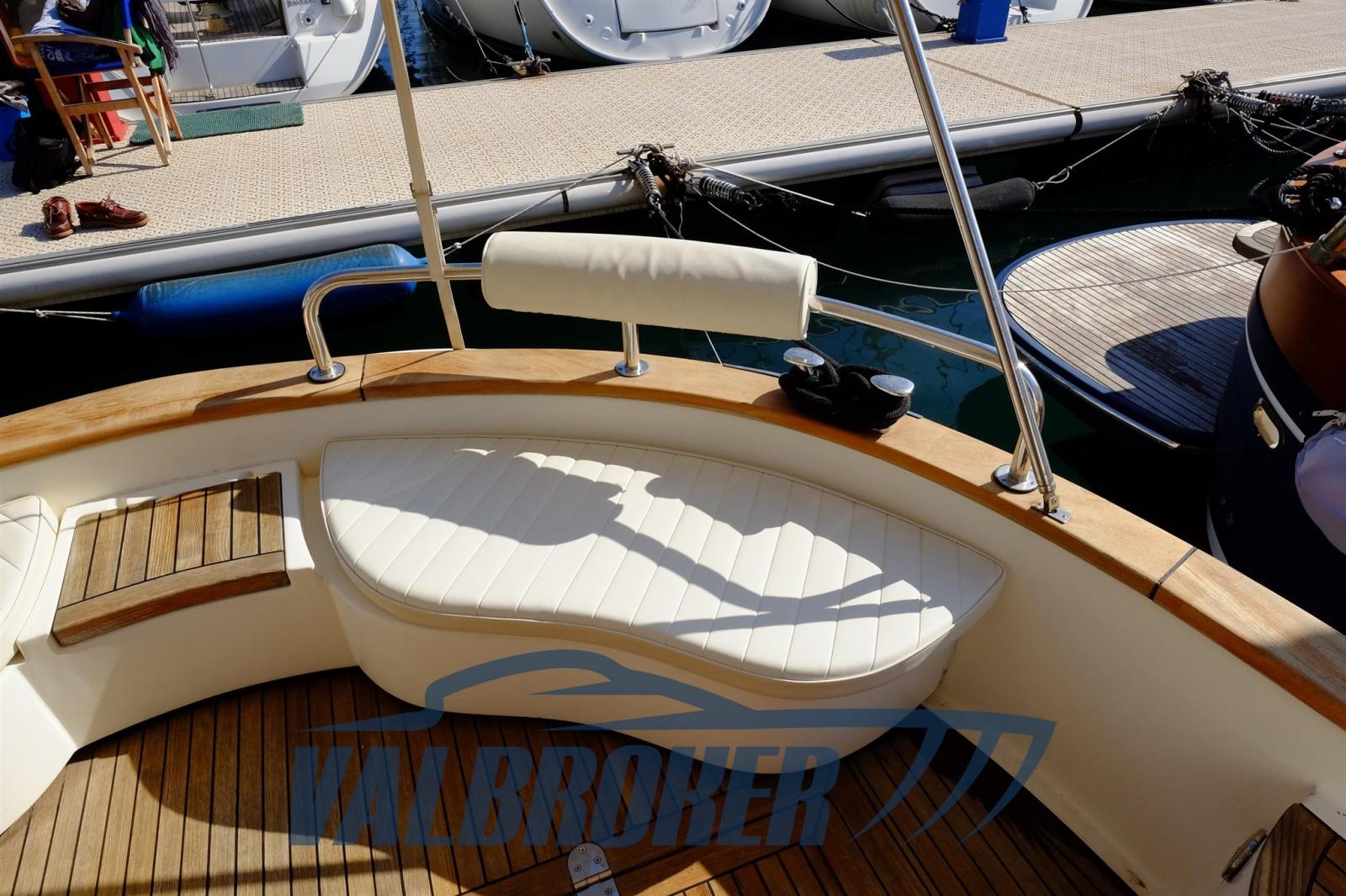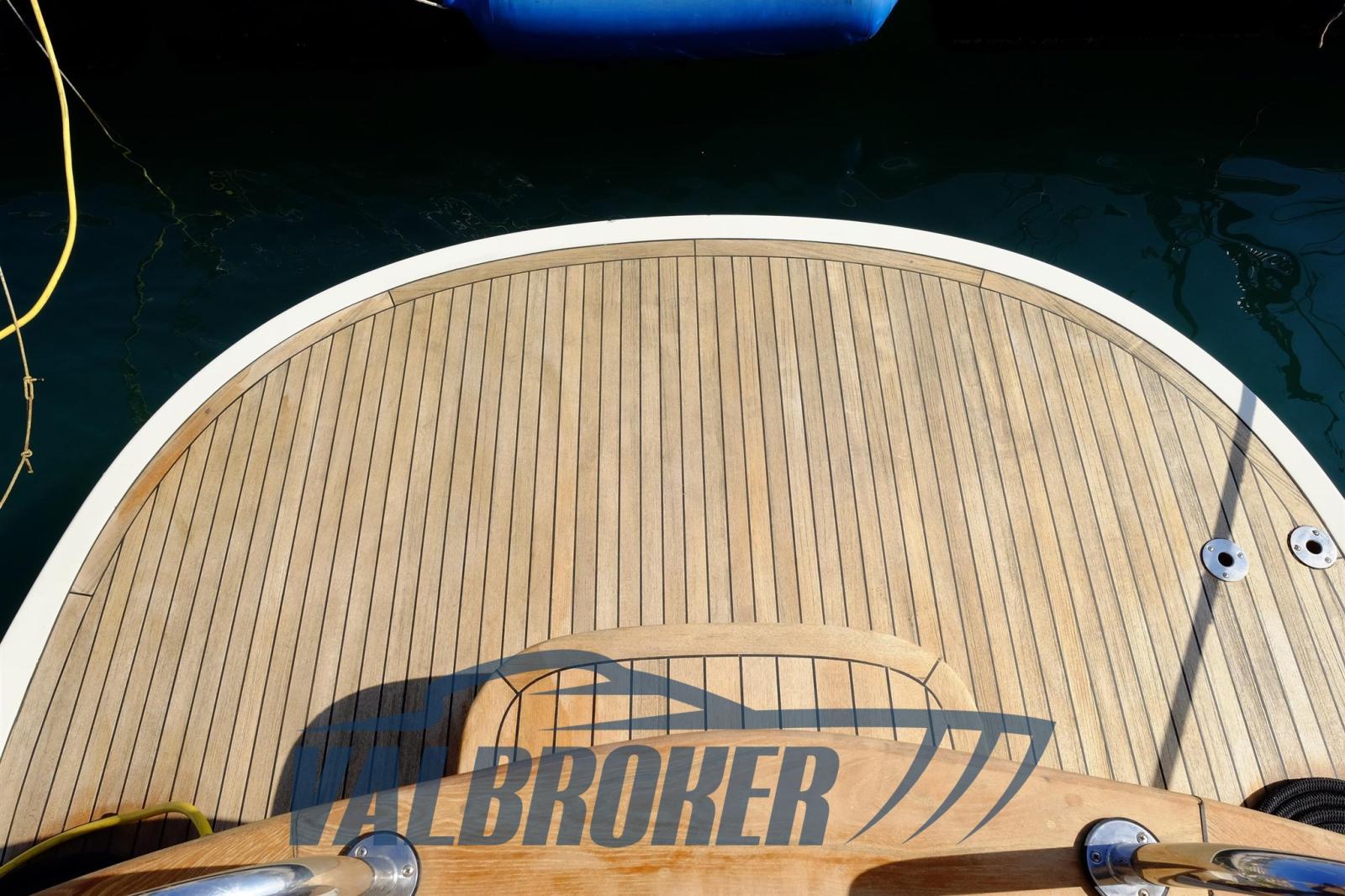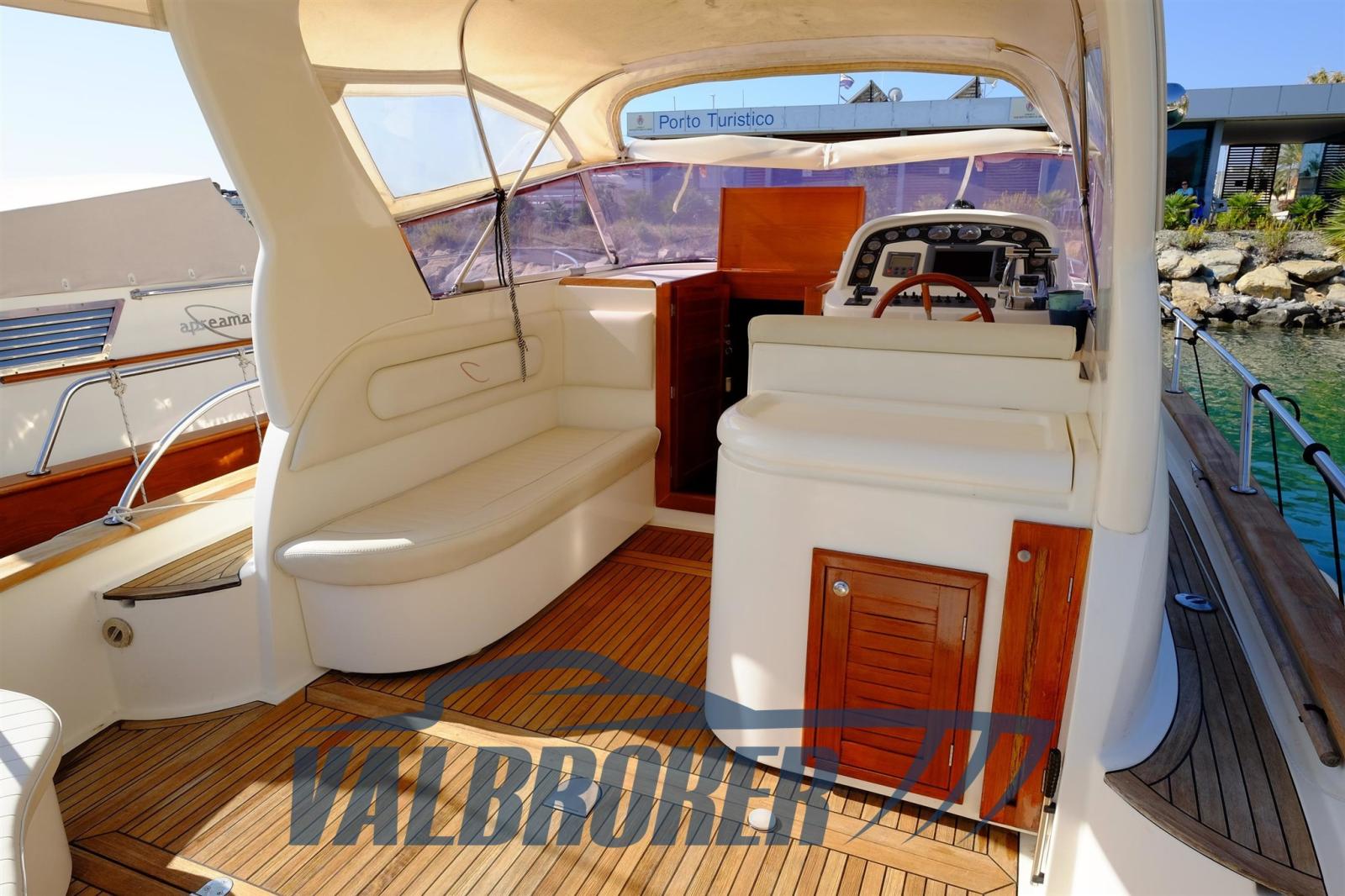 Eau sous pression, Passavant en teck, Propulseur d'étrave (vetus), Lavabo dans le cockpit, Plateforme arrière (teak allungata), Cockpit en teck, Rollbar, Guindeau électrique, Table pliante de salon.