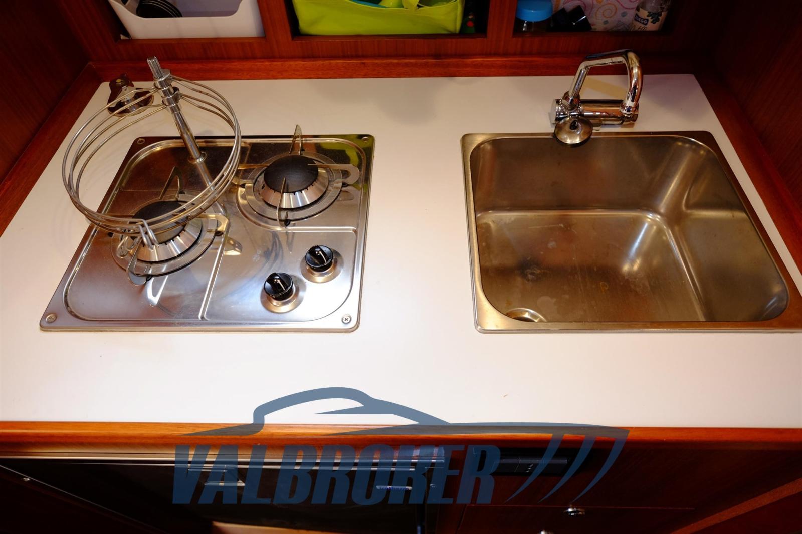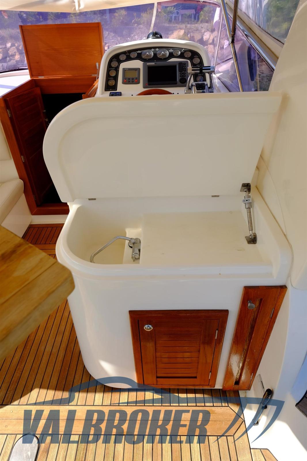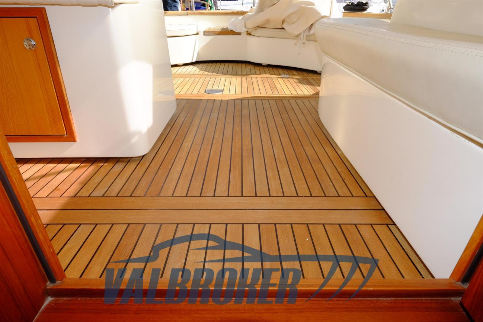Eau sous pression, Passavant en teck, Propulseur d'étrave (vetus), Lavabo dans le cockpit, Plateforme arrière (teak allungata), Cockpit en teck, Rollbar, Guindeau électrique, Table pliante de salon.