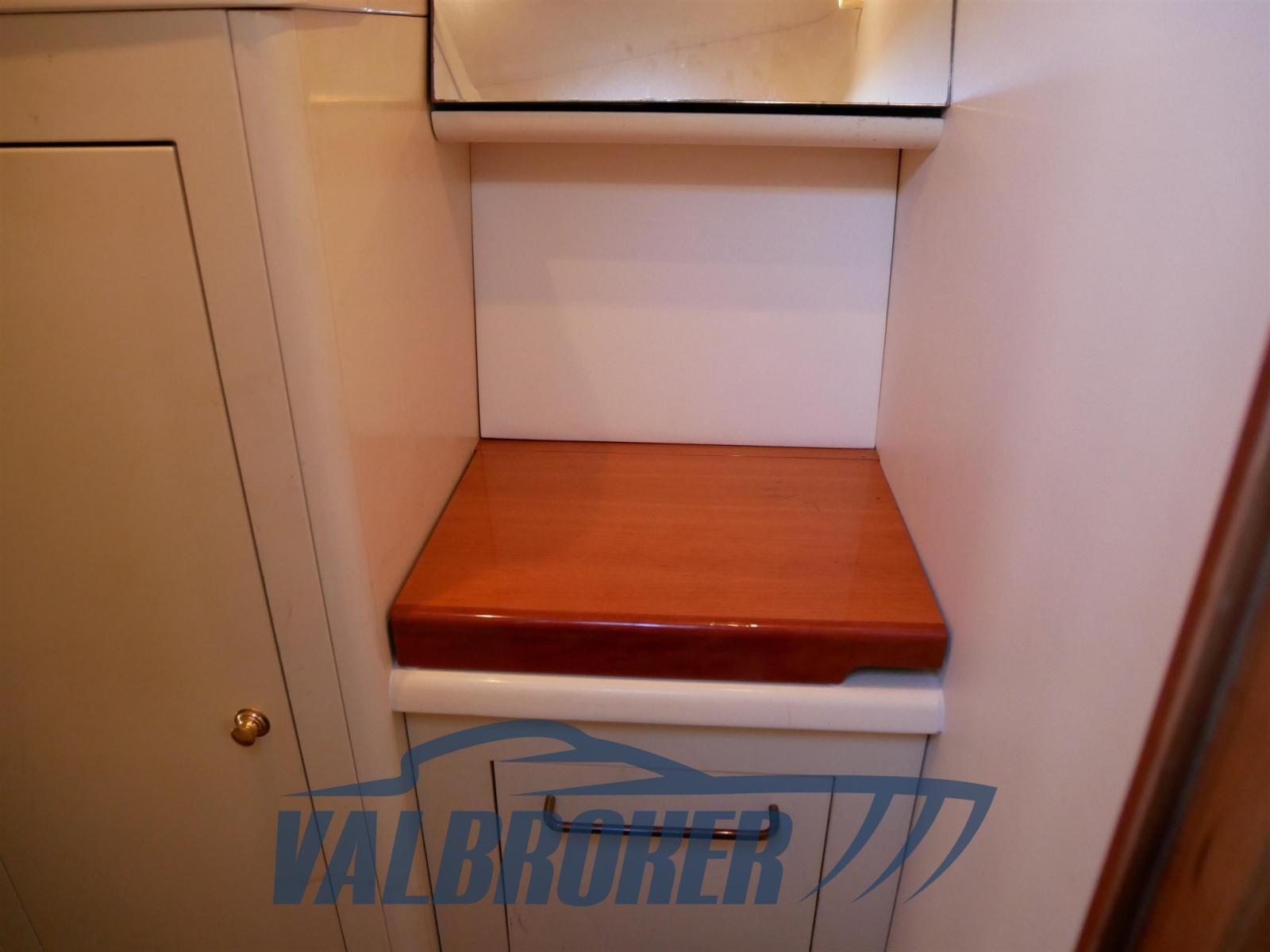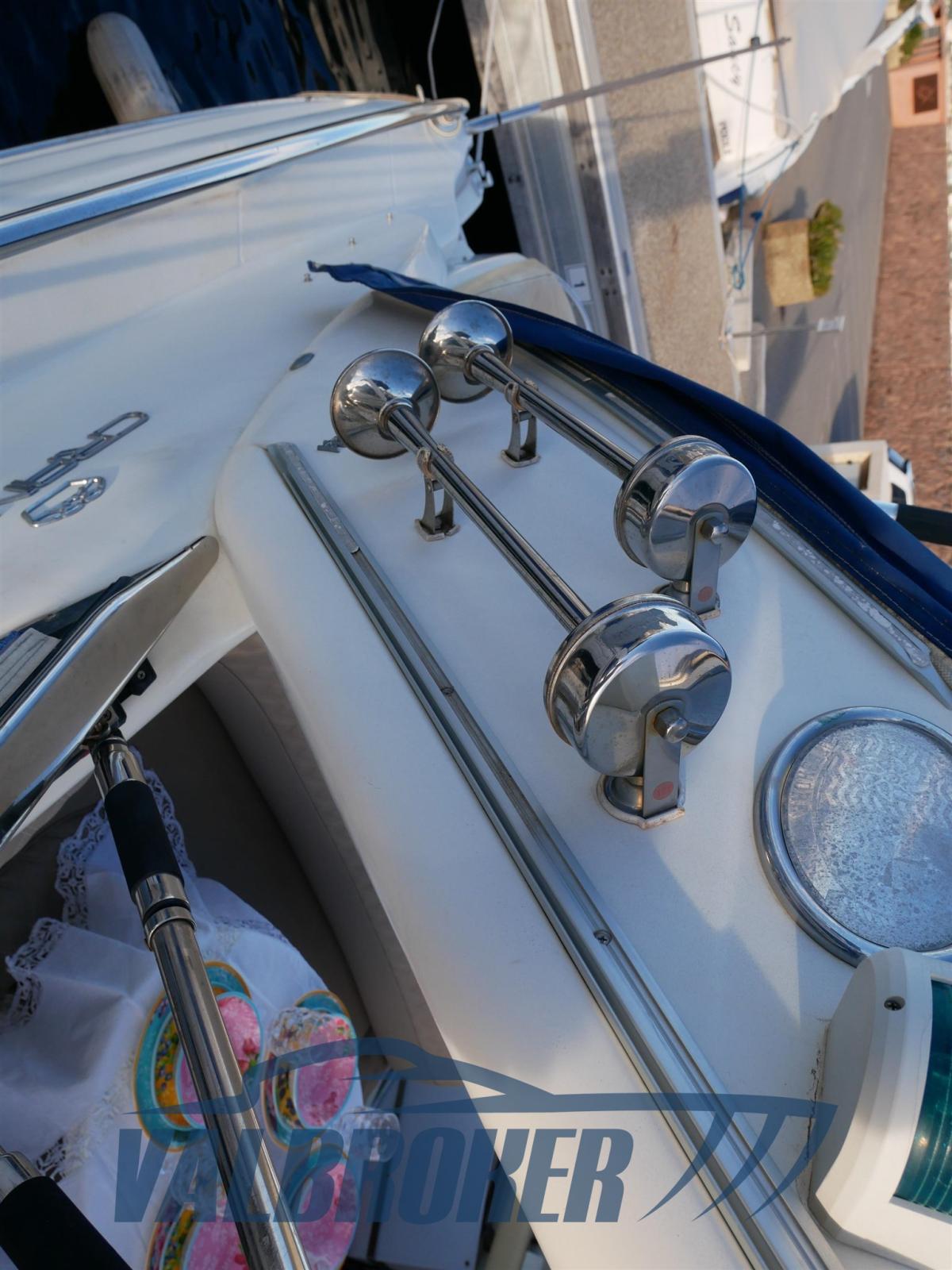 Eau sous pression, Douche de cockpit, Propulseur d'étrave (side power), Garage à annexe, Lavabo dans le cockpit, Éclairage de courtoisie, Passerelle (idraulica Besenzoni), Plateforme arrière (teak sintetico), Cockpit en teck (sintetico), Rollbar, Guindeau électrique (Lofrans), table de cockpit.